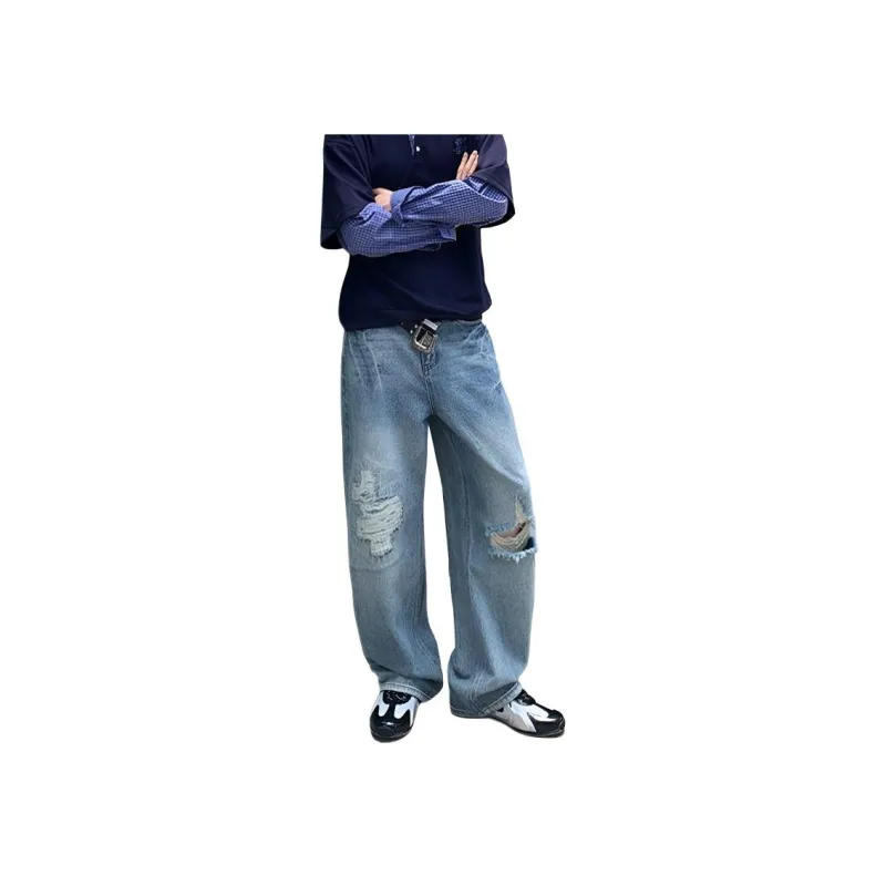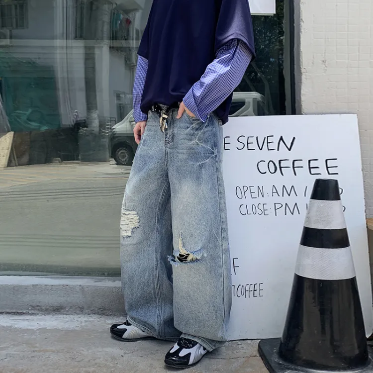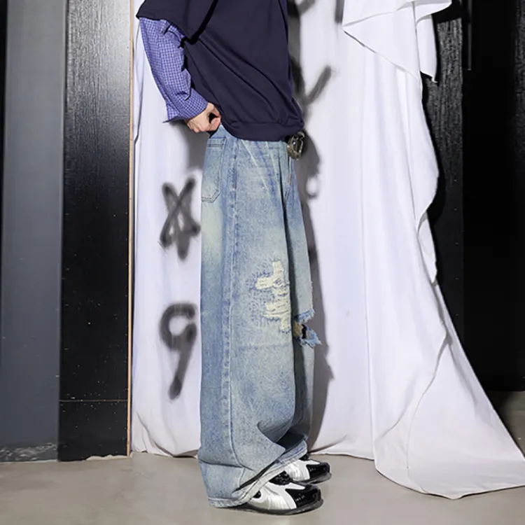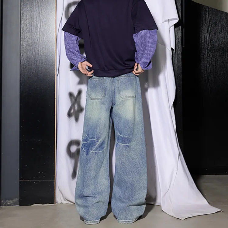 UOOHE Выстиранные синие унисекс джинсы