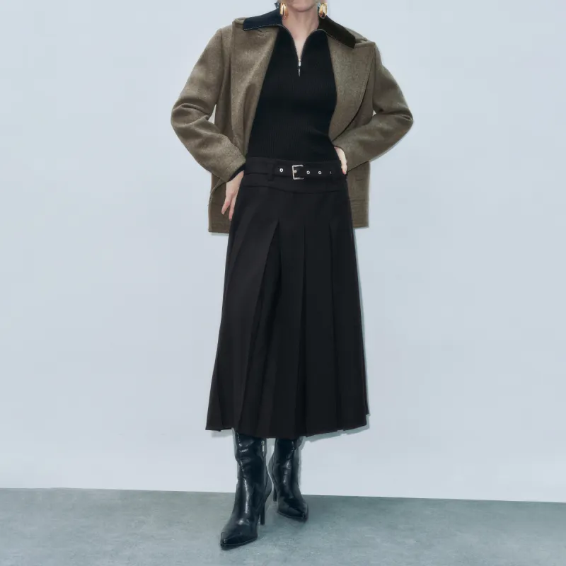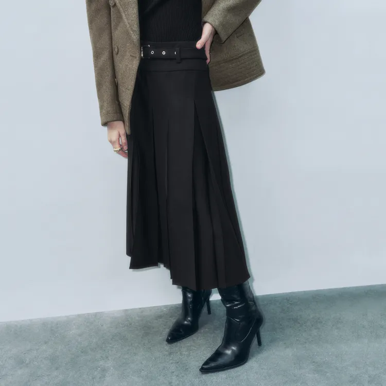 URBAN REVIVO Повседневный Длинный Юбка Женская Глубокий Черный