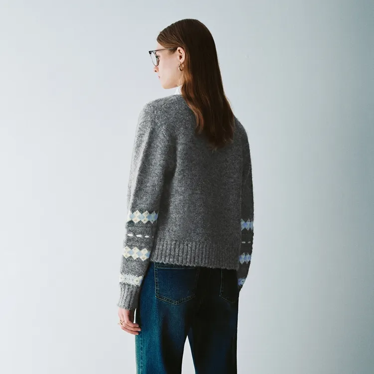 Основная часть: 67% полиэстер, 15% полиамид, 11% акрил, 6% овечья шерсть, 1% эластан Ребристый: 62% полиэстер, 23% полиамид, 9% Акрил, 5% овечья шерсть, 1% эластан