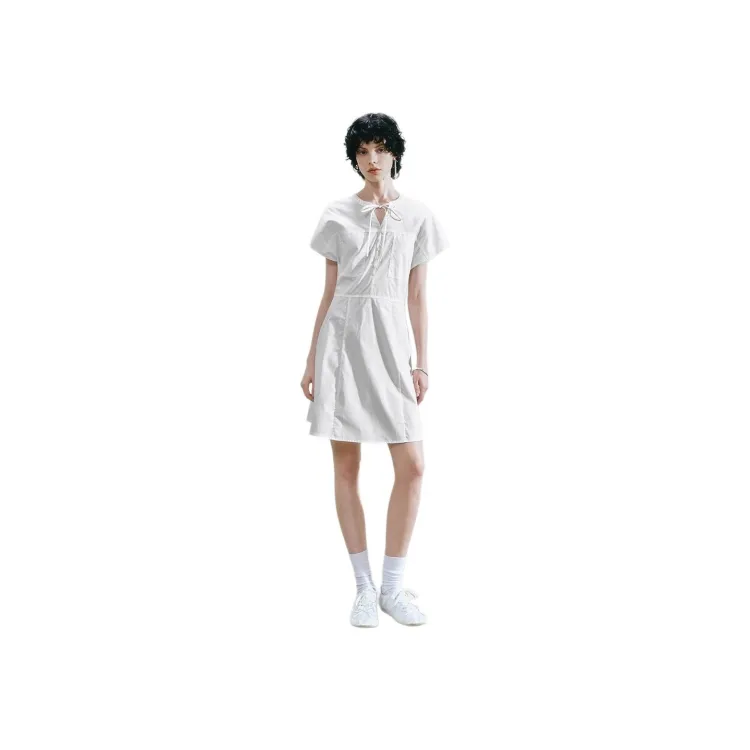 URBAN REVIVO Короткий рукав Платье Женское Натуральный белый