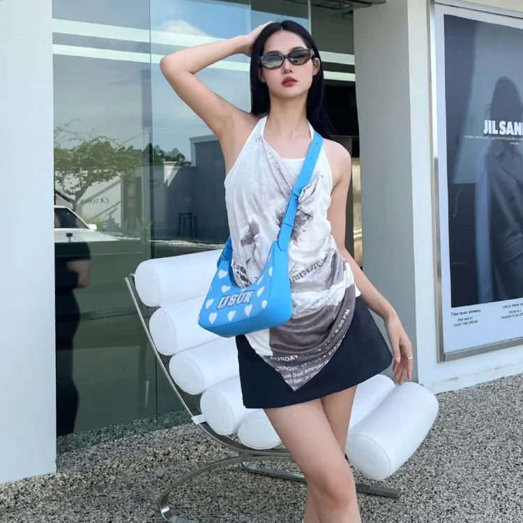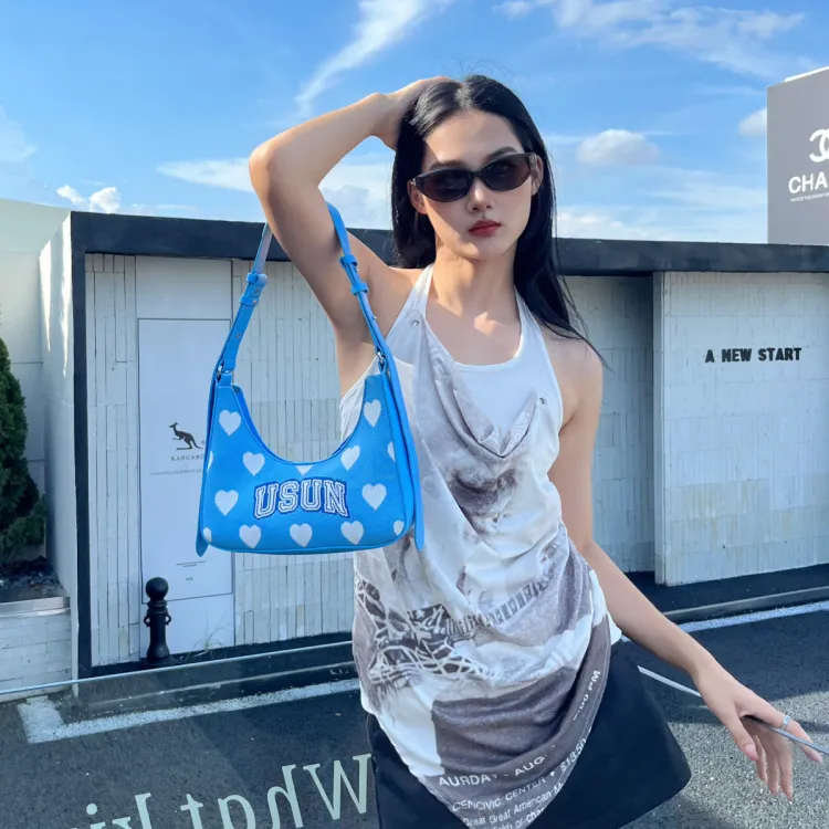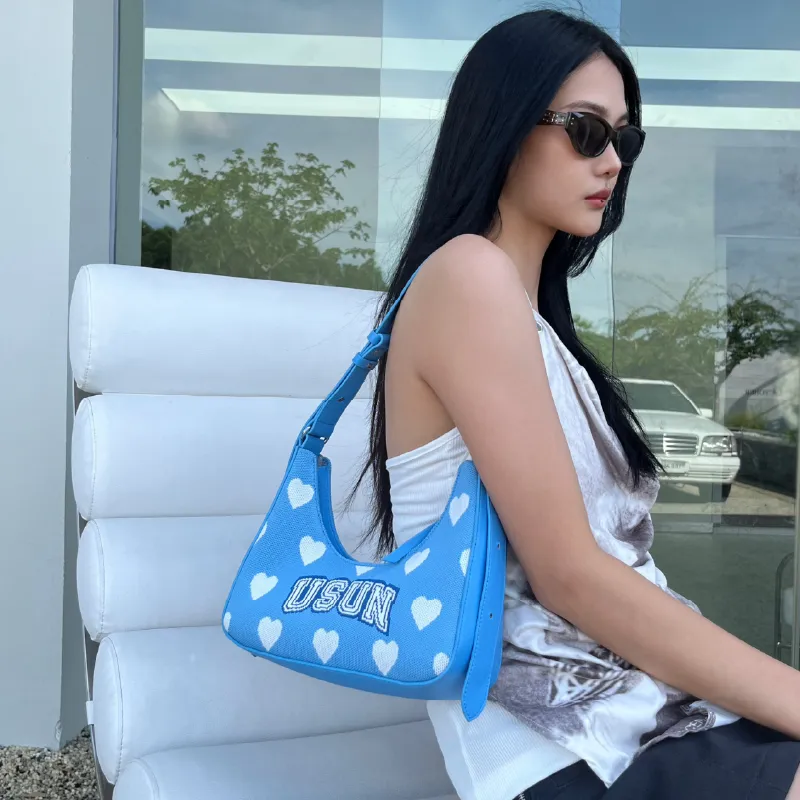 Usual Unusual Полиэстер с ПУ (полиуретан) Подмышечный Сумка Сумка через плечо Женская Небесно-голубая