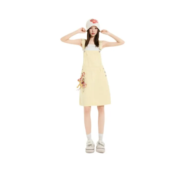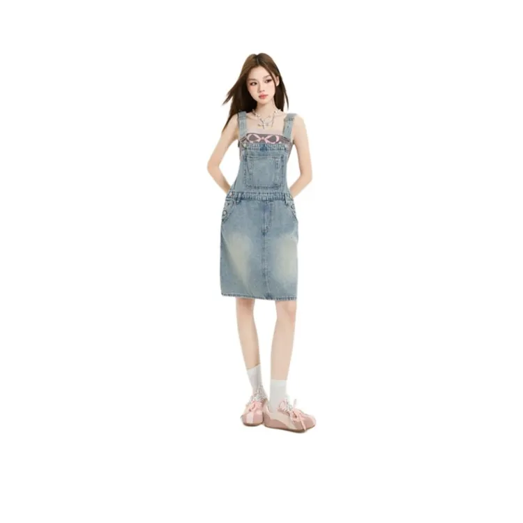 Светло-синяя юбка на подтяжках