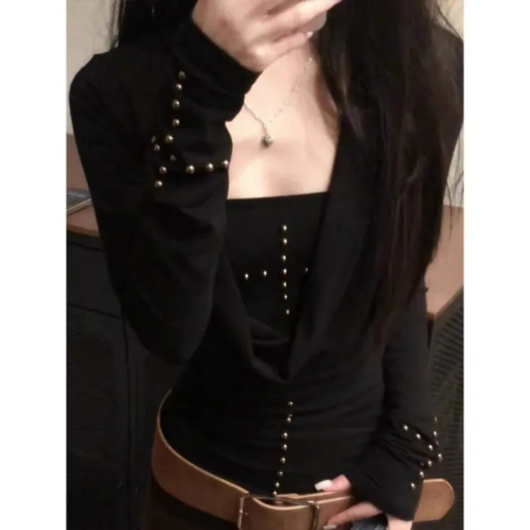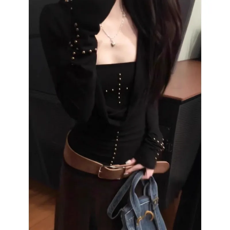 UYH Весенний Осенний Облегающий крой Stud Топ Отделение Без бретелей Топ Комплект из 2 предметов Женская