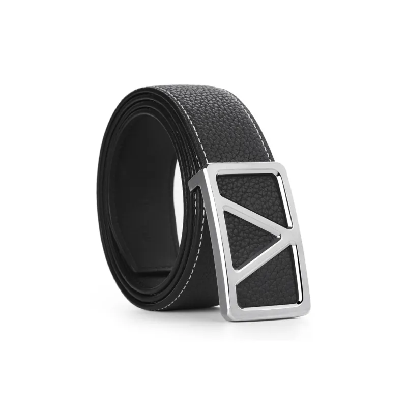 Серебряная пряжка, черный ремешок