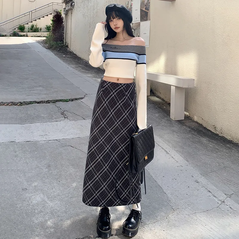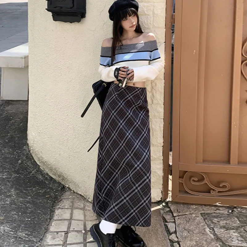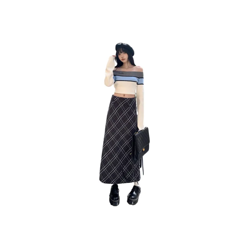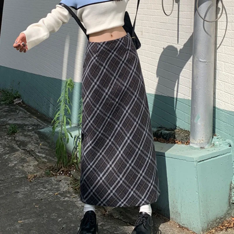 V.W.U Повседневный Длинный Юбка Женские Клетка
