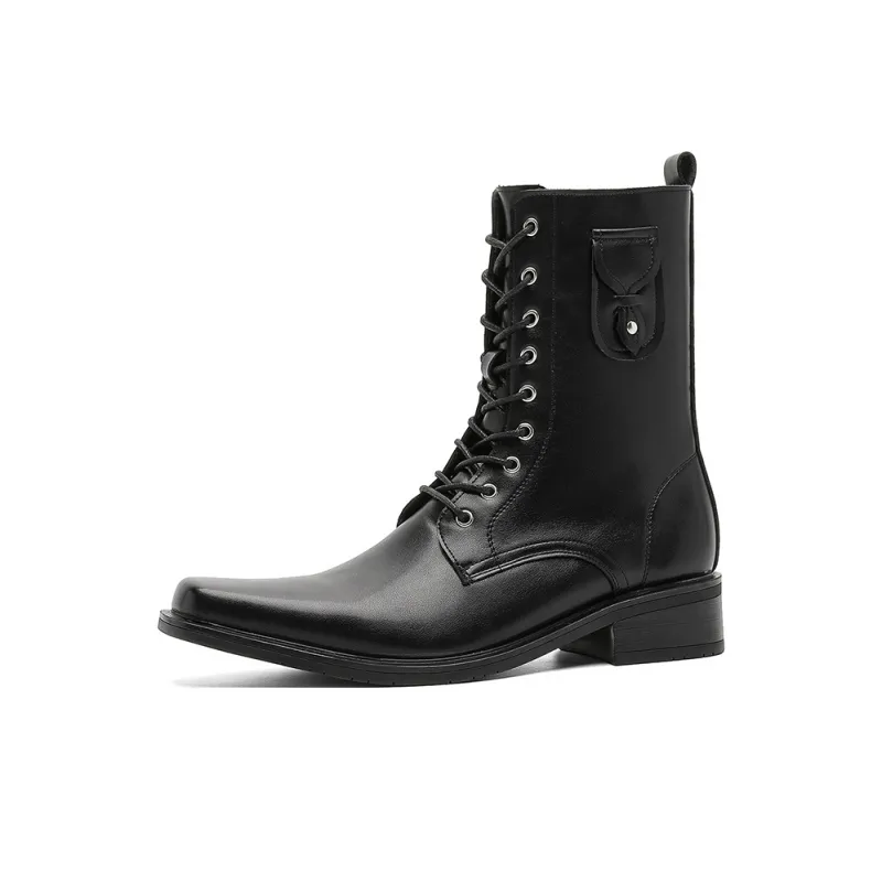 V ZERO FIVE Английский язык Ботинки Короткий MID Голень Мартин Boot визуально увеличивает рост Мужской Черный