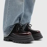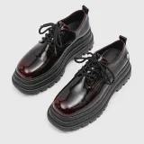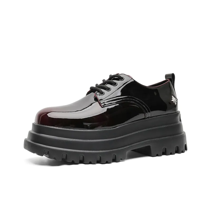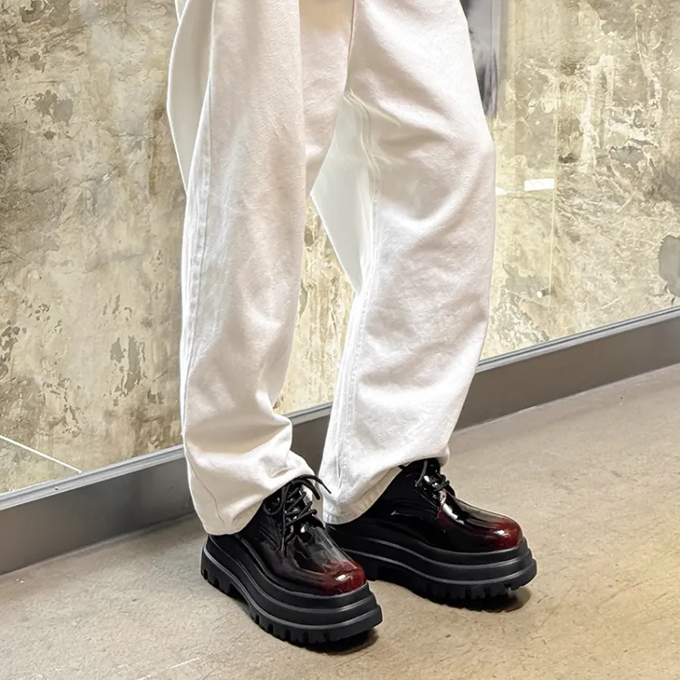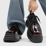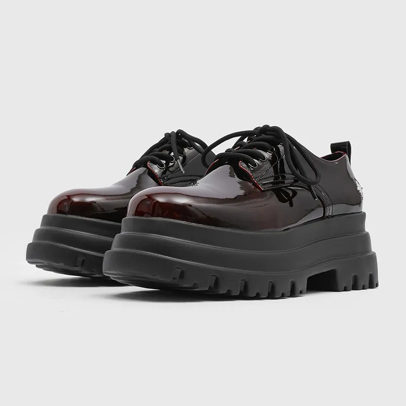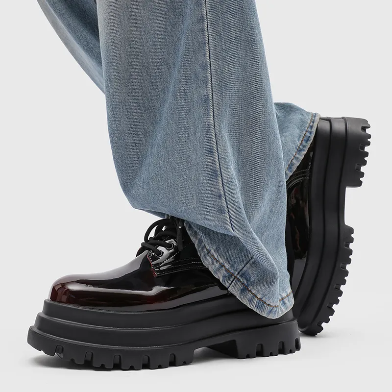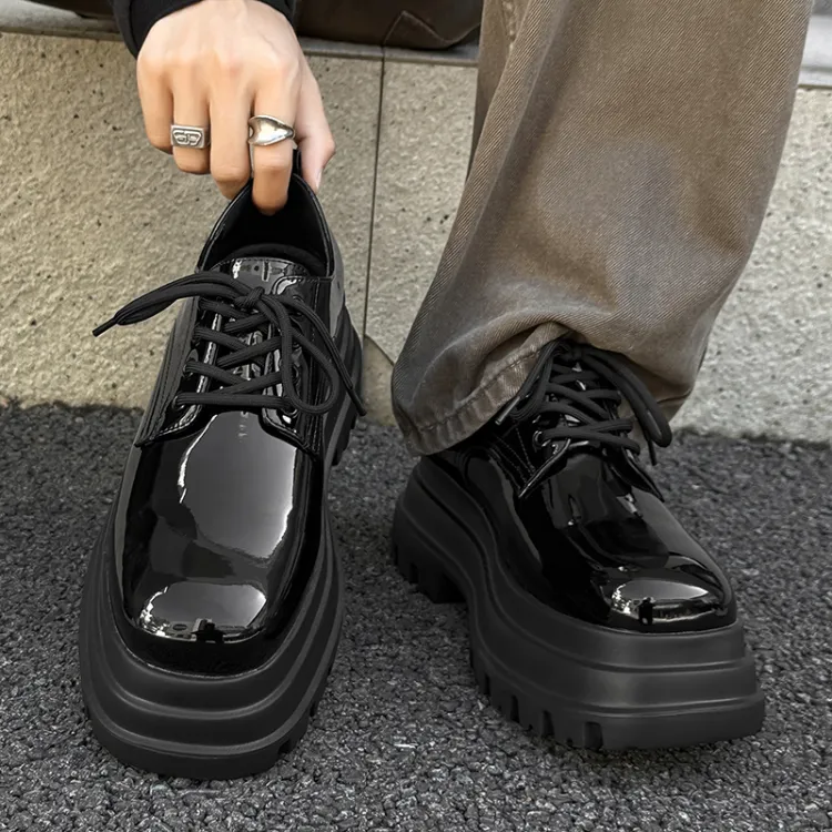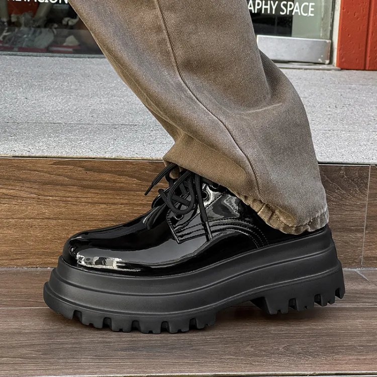 V05 Высота увеличивается на 7 см Chunky Кружево Вверх Платформа Обувь без подкладки Лакированная кожа Универсальный Derby Обувь Мужская