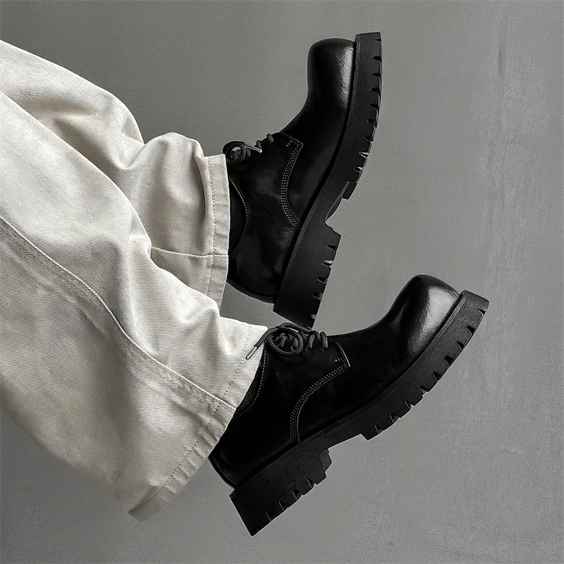V05 Paris Derby Обувь Унисекс Британский стиль Удобная Универсальная Черная Платформа Увеличение высоты Chunky Обувь