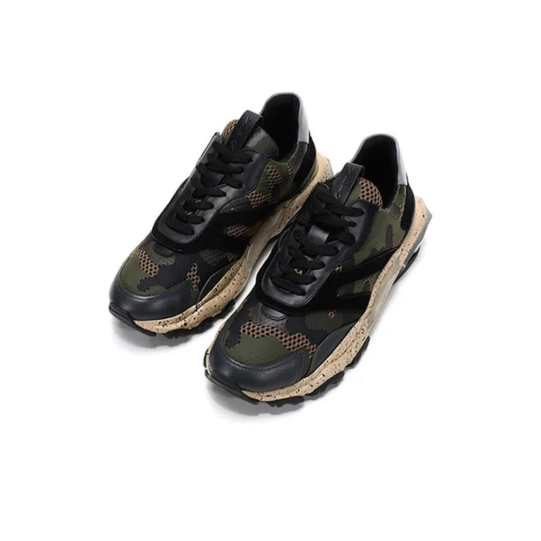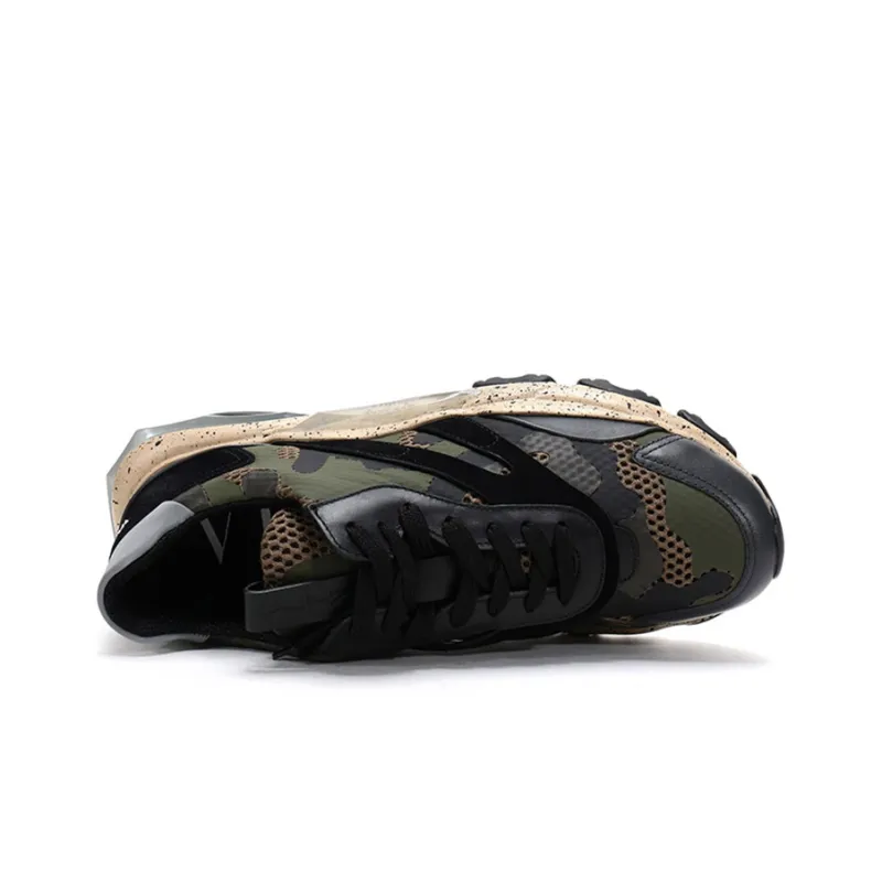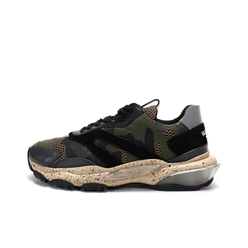 Valentino Bounce Low Топ Толстоподошвенные кроссовки Мужской Армейский зеленый и Черный Цвет Блокировка Потертый Позиционирование Стиль