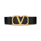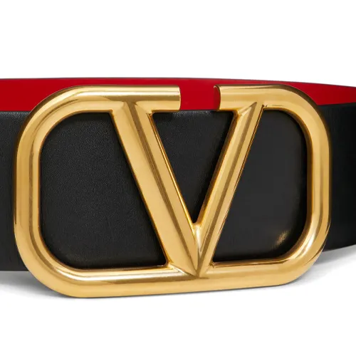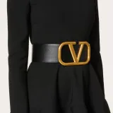 Valentino Логотип Emblem Двойной Sided Плавная пряжка Кожаные ремни Женские Черный Ширина 7 см