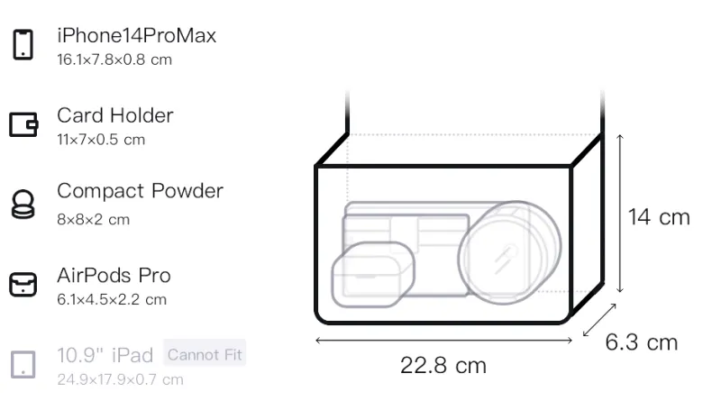Д22,8*Ш6,3*В14см