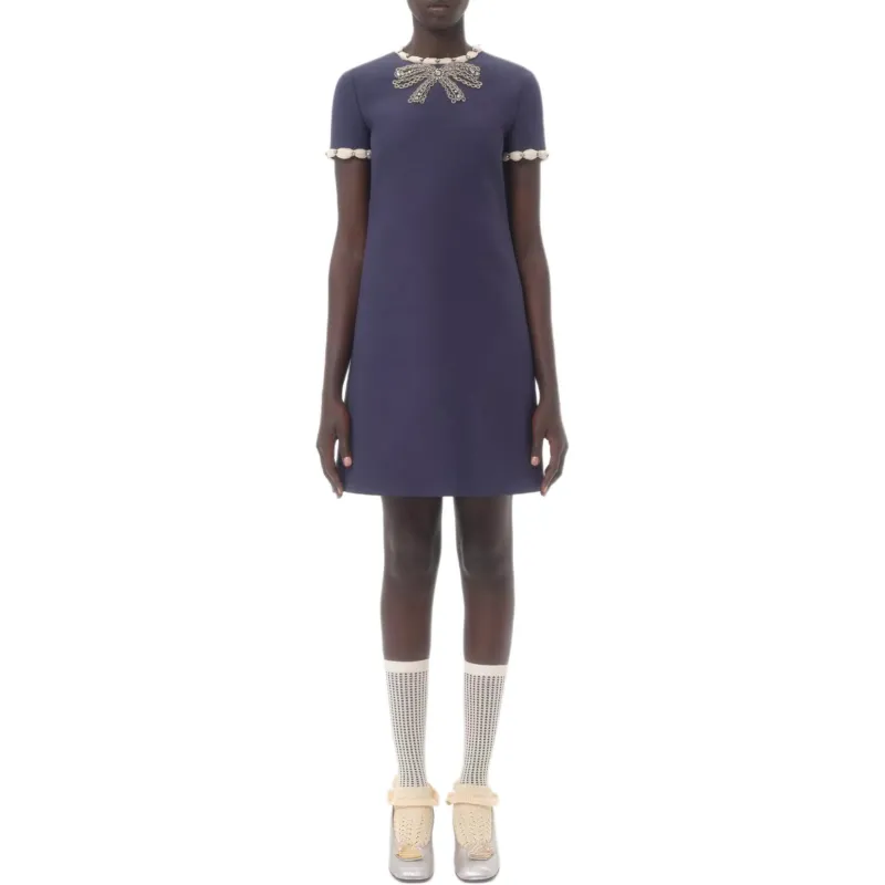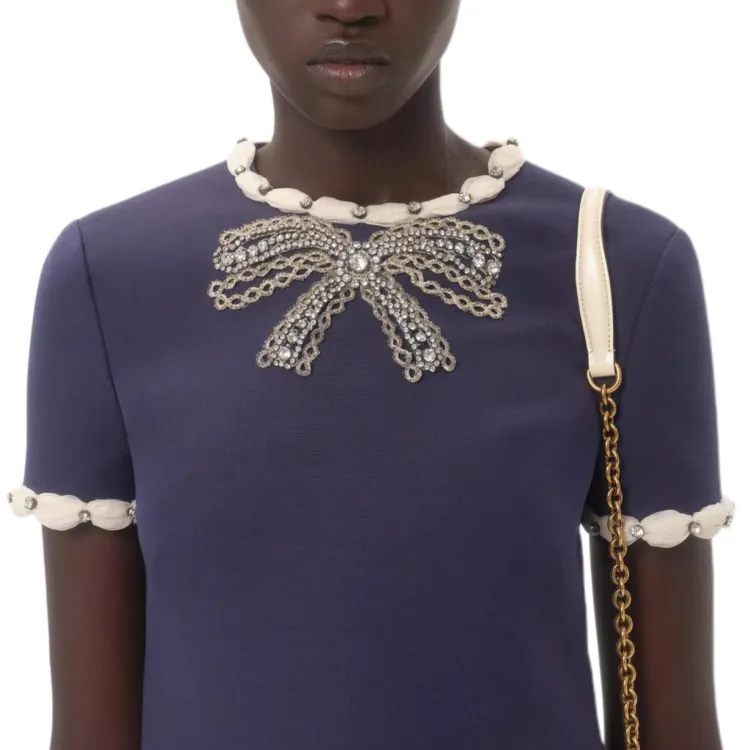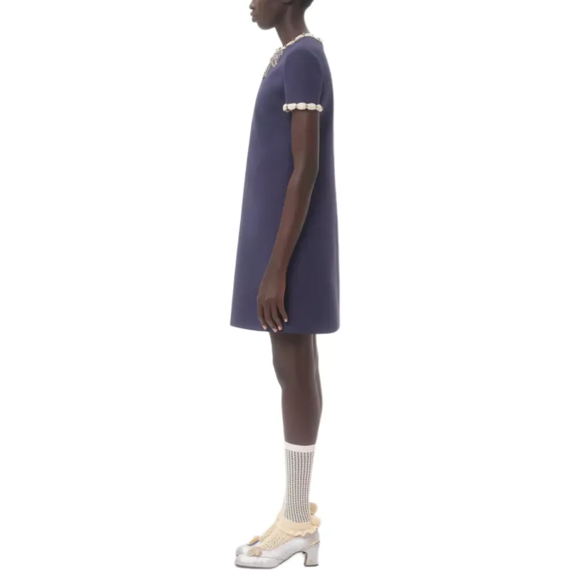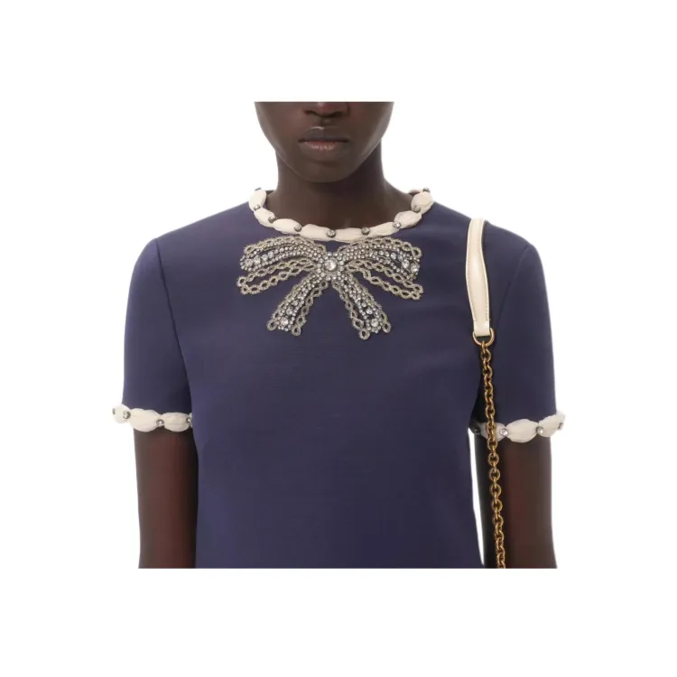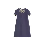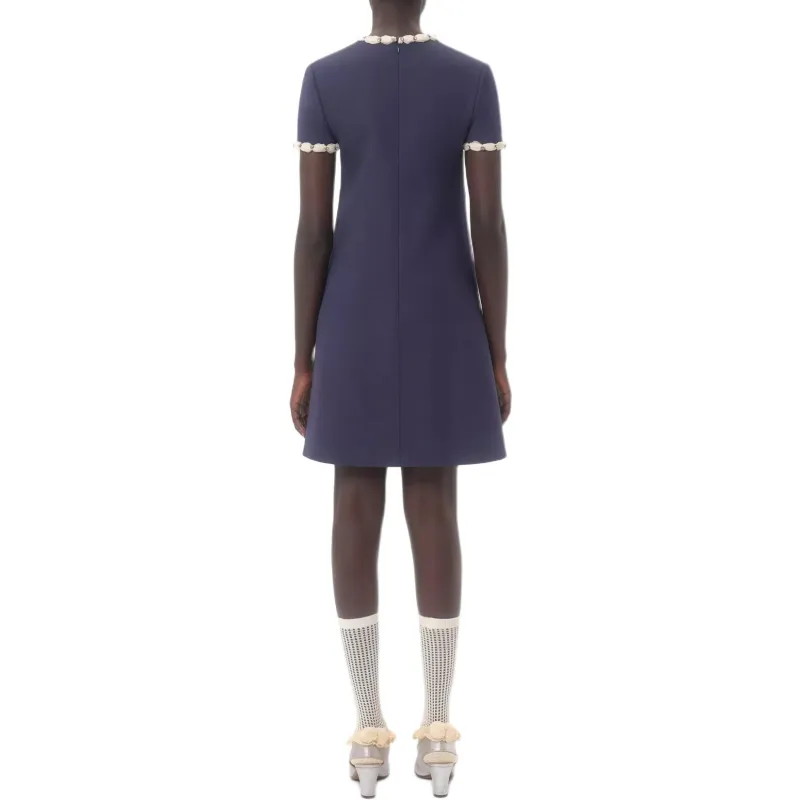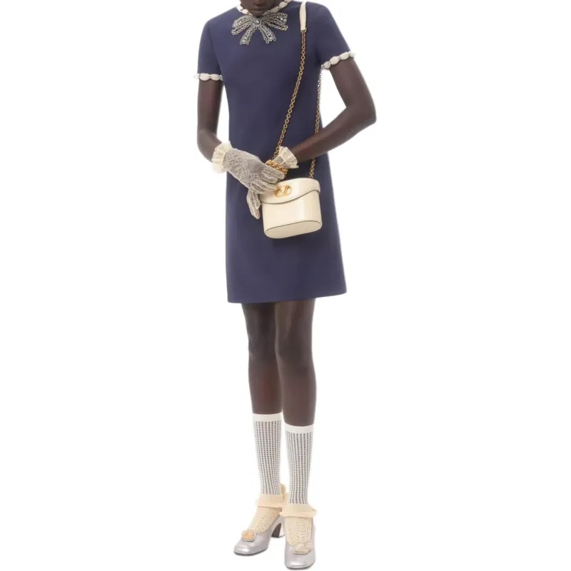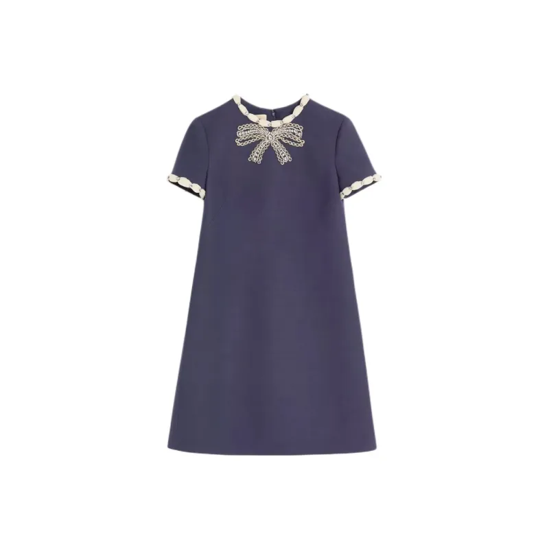 Valentino CREPE COUTURE SS25 Короткий рукав Платье Женское Синее