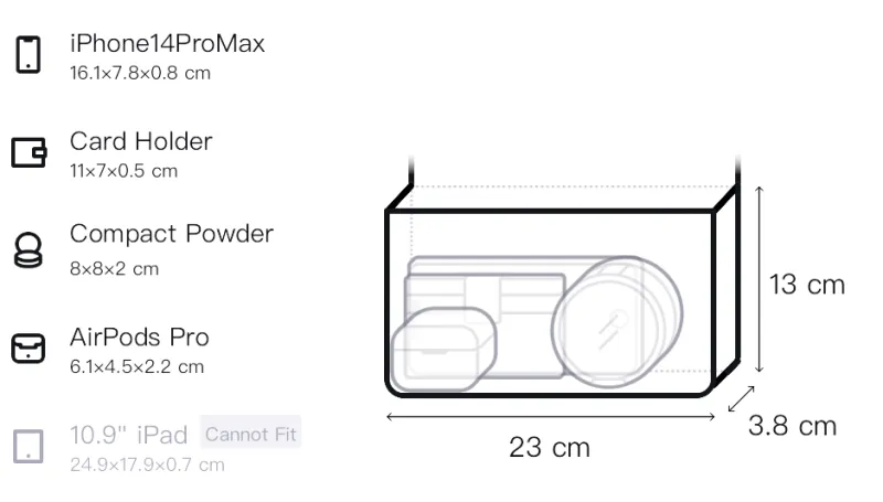 Д23*Ш3,8*В13см