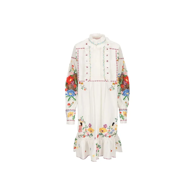 Valentino Длинное платье с длинными рукавами женское белое