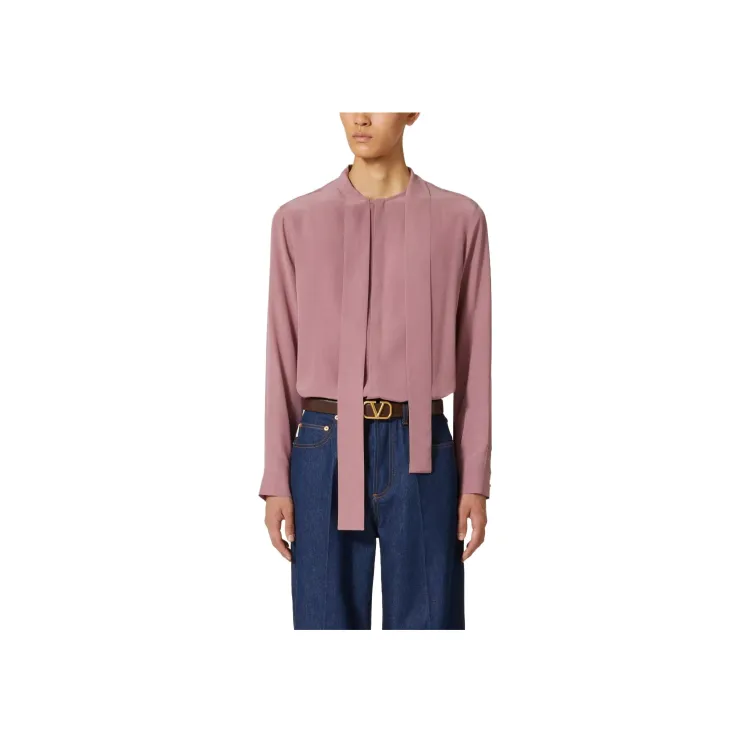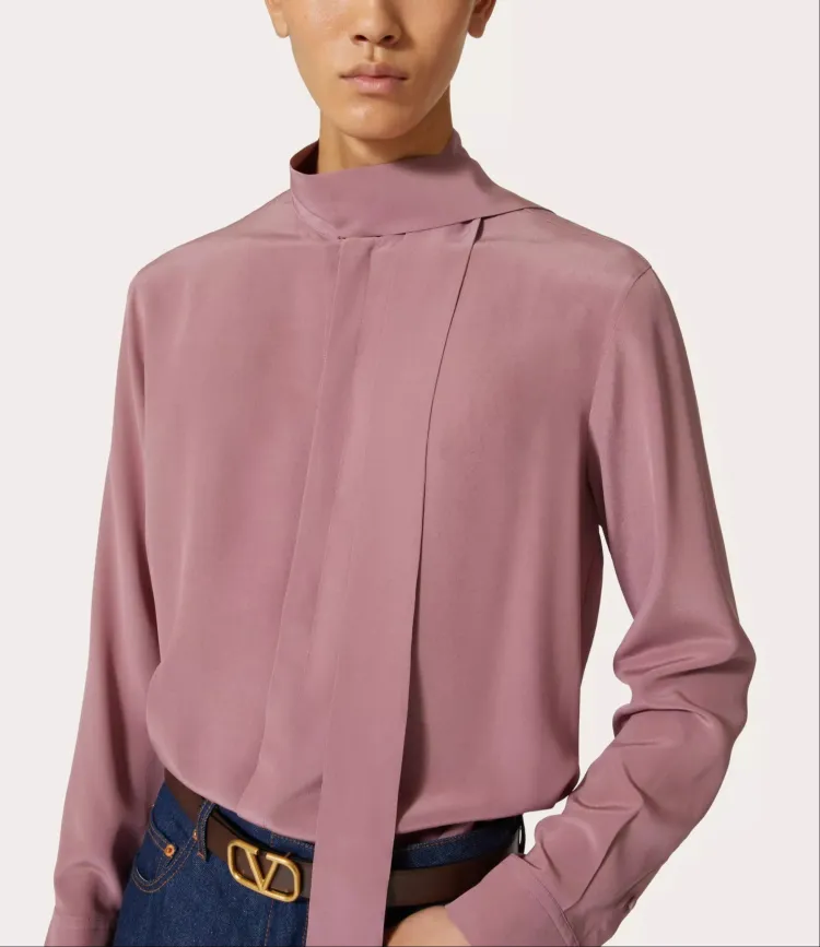 Valentino FW23 Промытый шелк рубашка с воротником галстук мужская фуксия