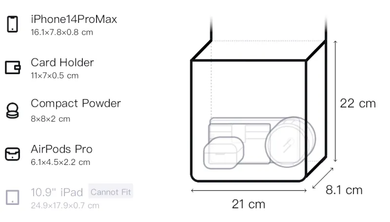 Д21*Ш8,1*В22см