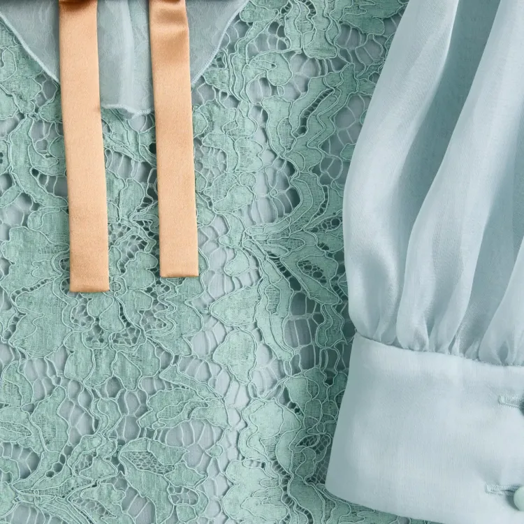 Valentino SS25 Короткий рукав Платье Женское Бирюзовый