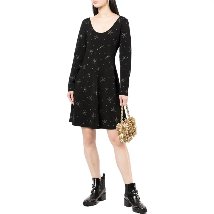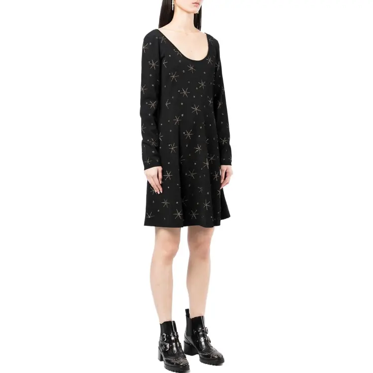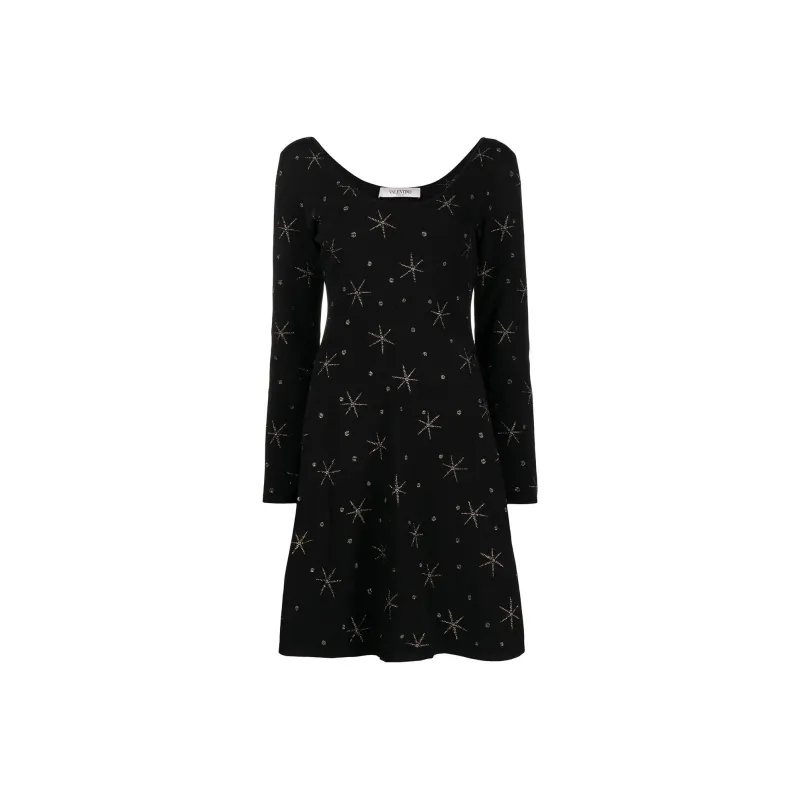 Valentino Черное Женское Длинное Платье с Рукавами