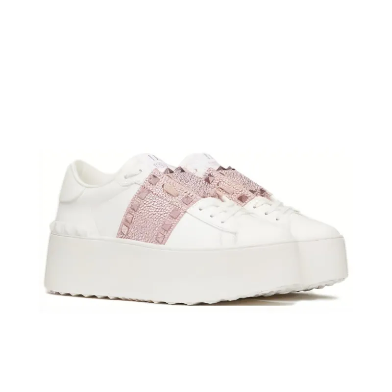 Valentino ROCKSTUD UNTITLED Низкий топ Повседневная обувь Женская Белая Розовая