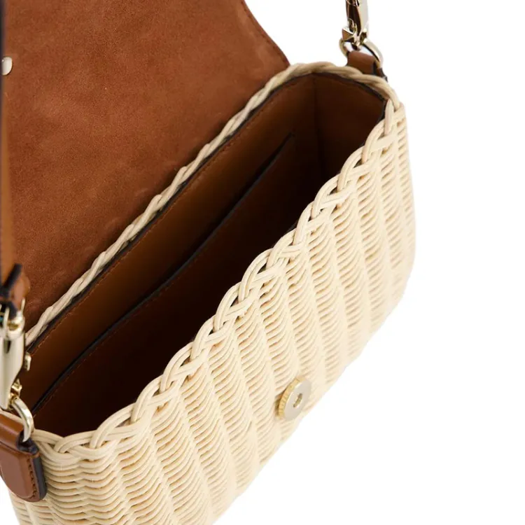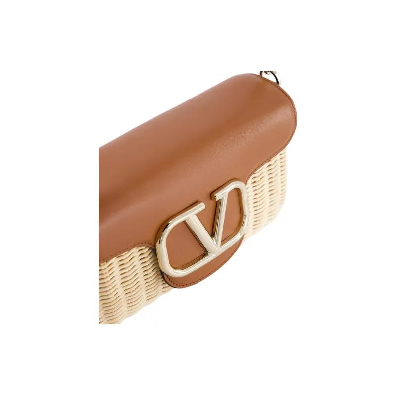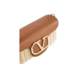 Valentino Garavani Солома с кожаными вставками сумка на плечо женская коричневый и белый