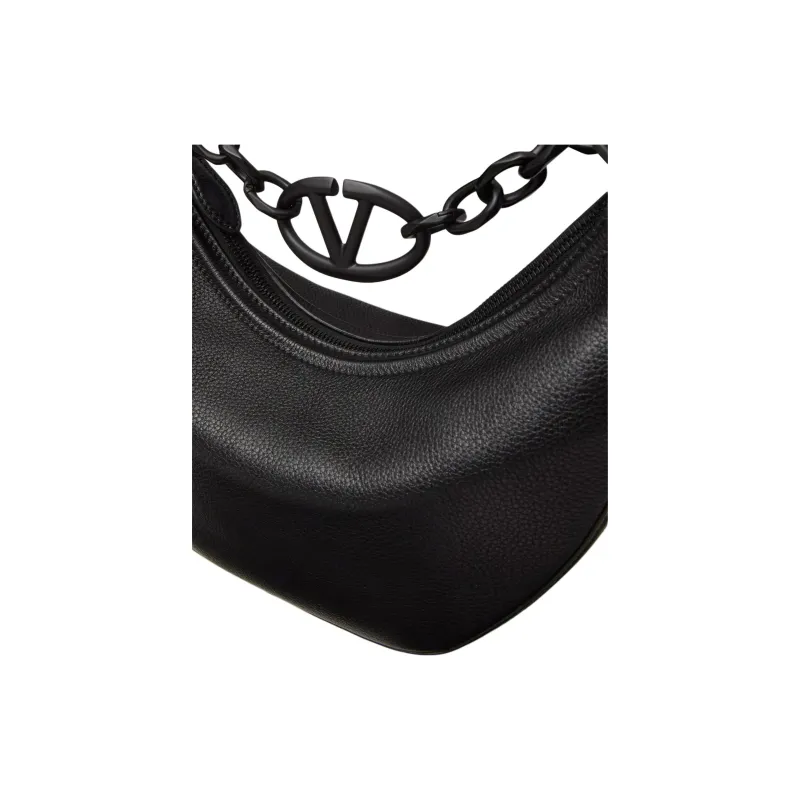 Valentino Рельефная Телячья Кожа Сумка-хобо Портативная Сумка через плечо Маленькая Женская Черная