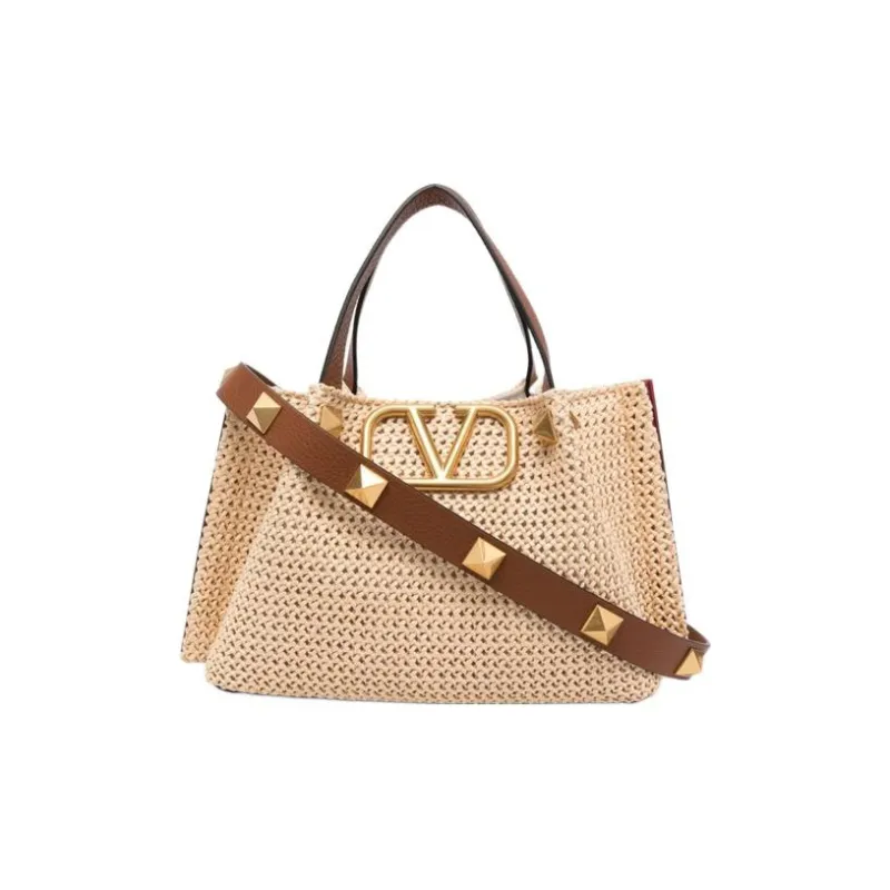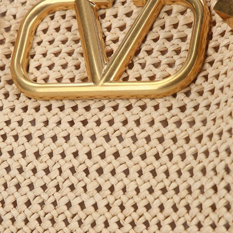 Valentino Натуральная соломенная сумка с кожаными вставками сумка через плечо стандартная женская коричневая