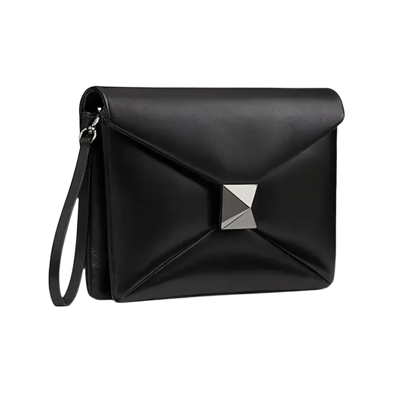 Valentino One Stud Lambskin Clutch Men's Black