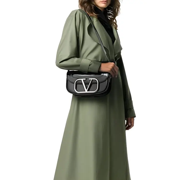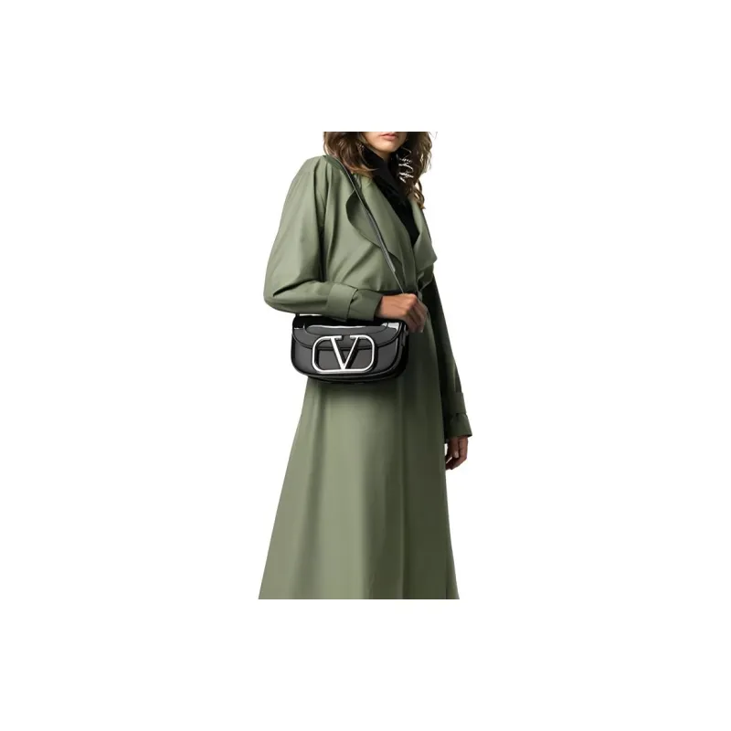 Valentino Лак Кожаная Сумка через плечо Женская Черная