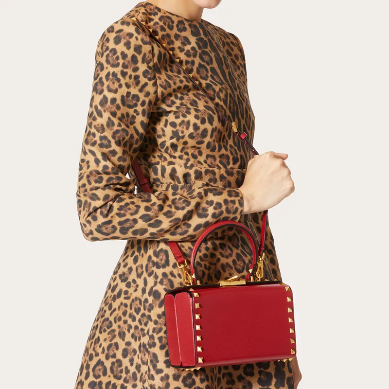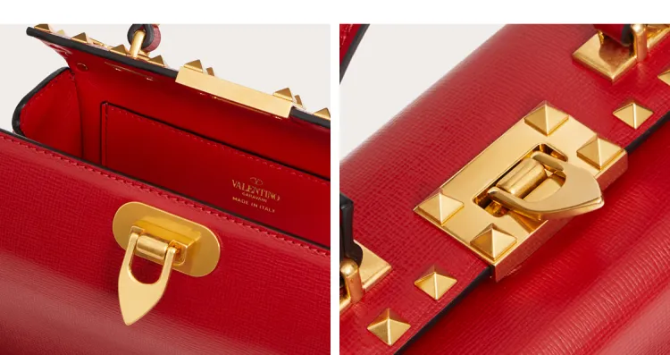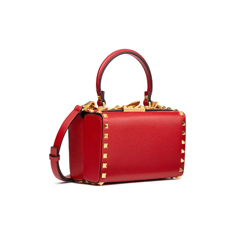 Valentino Rockstud Alcove Телячья кожа Коробка Сумка через плечо Сумка Сумка Маленькая Женская Красная