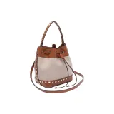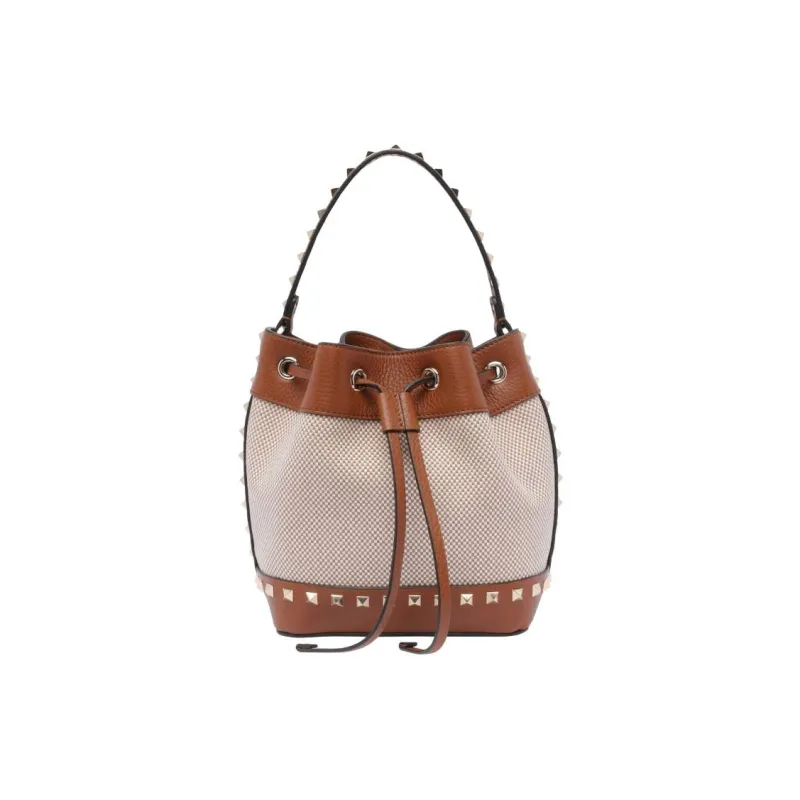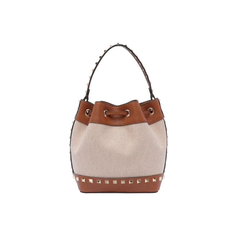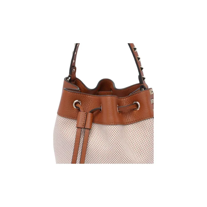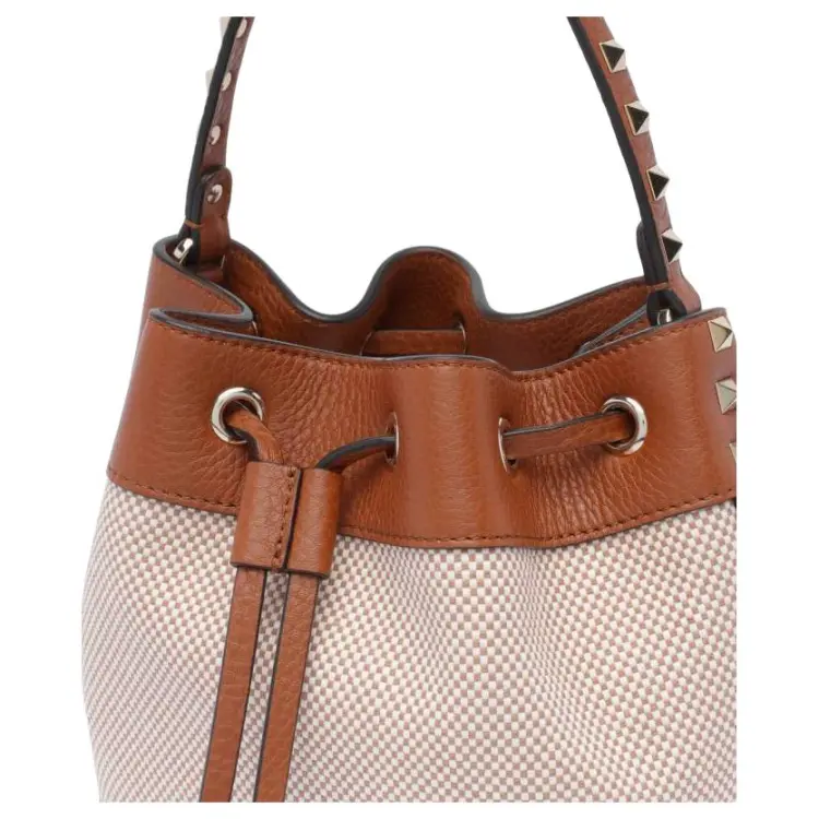 Valentino Rockstud Ткань Ведрообразная Сумка Сумка через плечо Женская Коричневая и Бежевая