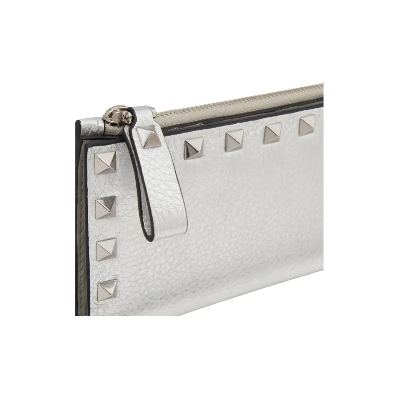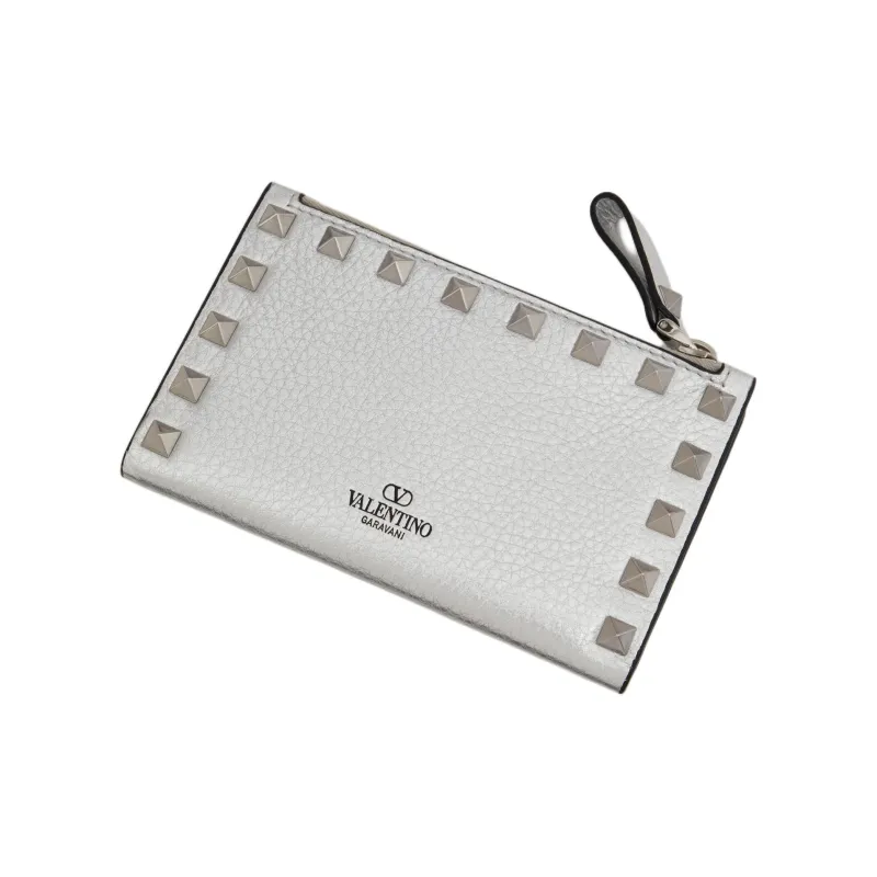 Valentino Rockstud с рельефом телячья кожа держатель для карт женский серебряный