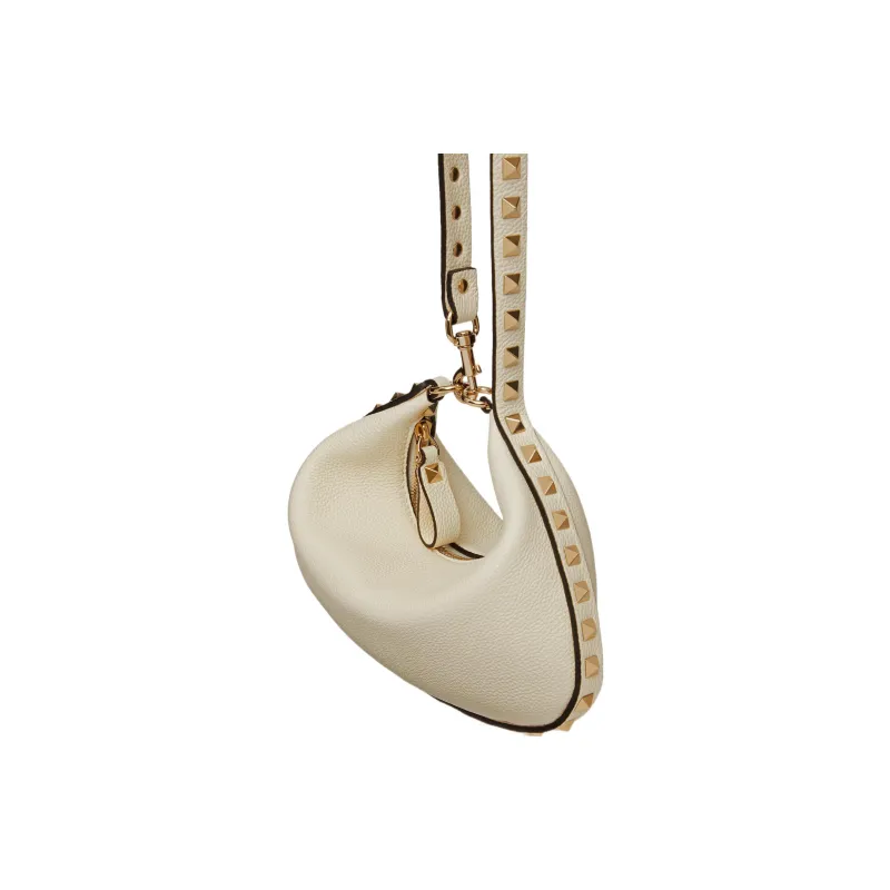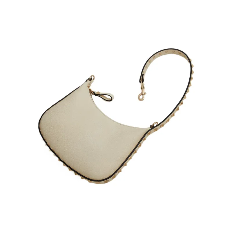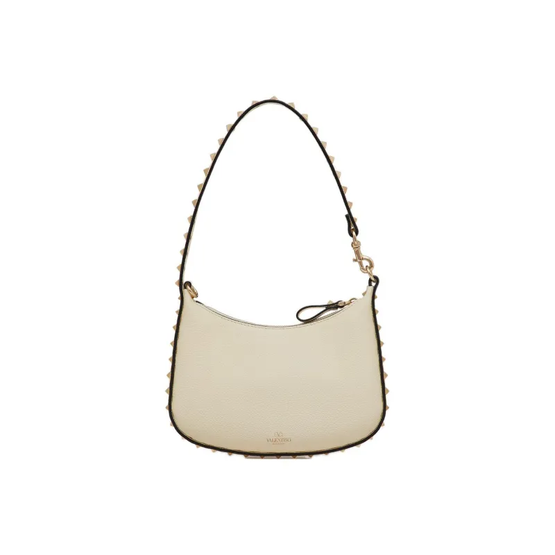 Valentino Rockstud Рельефная Телячья Кожа Хобо Сумка Сумка через плечо Женская Айвори Белый