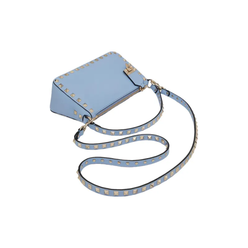 Valentino Rockstud с рельефом телячья кожа портативная сумка через плечо маленькая женская светло-синий