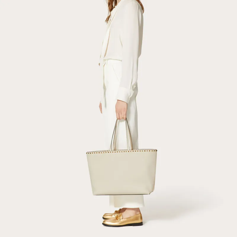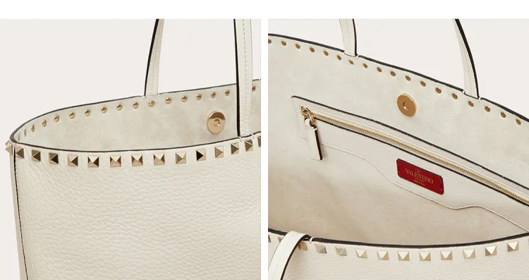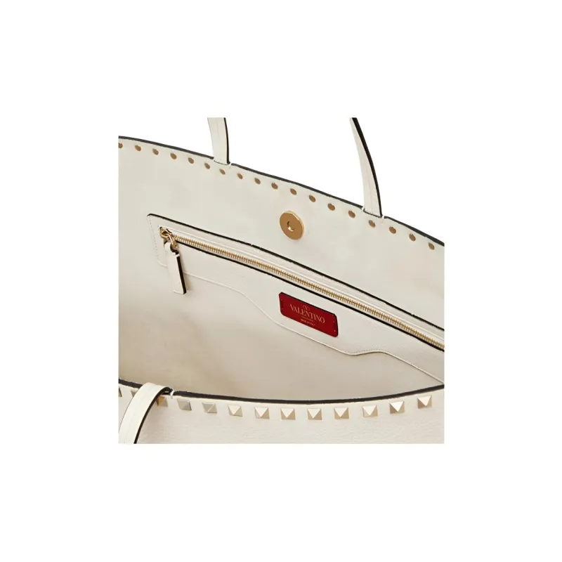 Valentino Rockstud Телячья кожа с текстурой сумка-тоут сумка через плечо женская цвет светло-слоновая кость