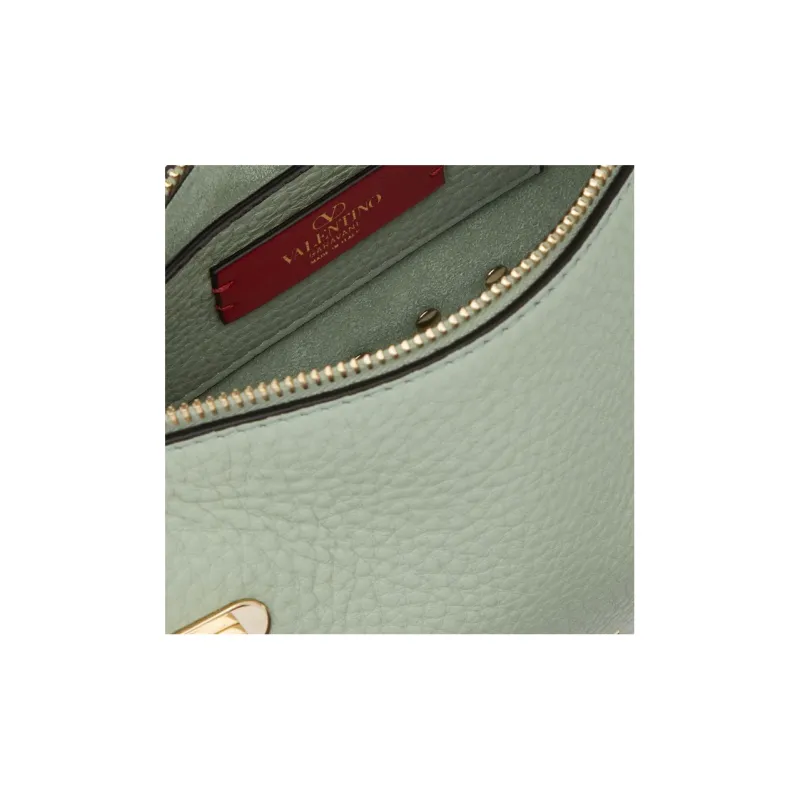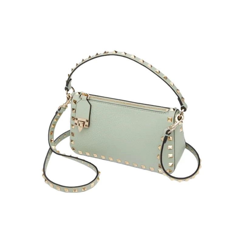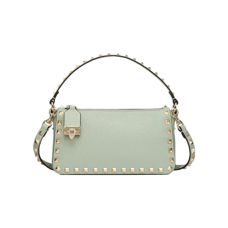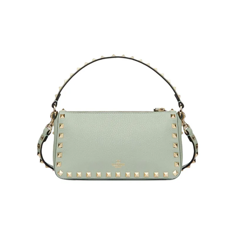 Valentino Rockstud Рельефная Телячья Кожа Багет Сумка через плечо Сумка на плечо Сумка маленькая Женская Аква Зеленая