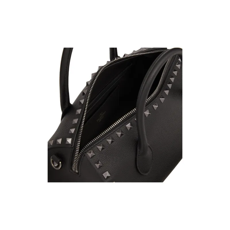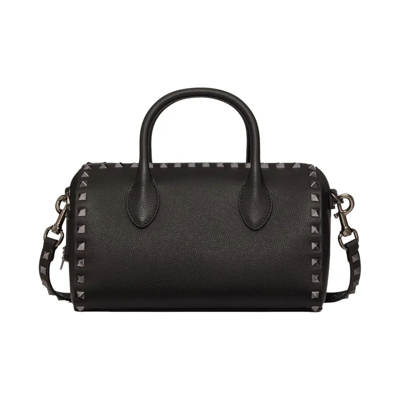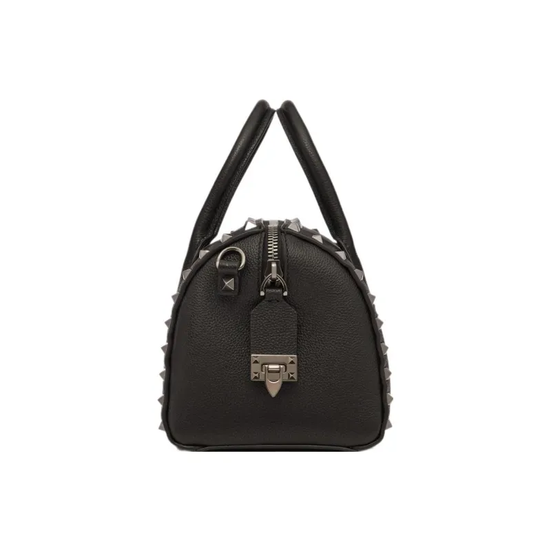 Valentino Rockstud Телячья кожа с текстурой Бостон Сумка через плечо Сумка Сумка для женщин Черный