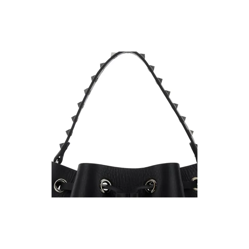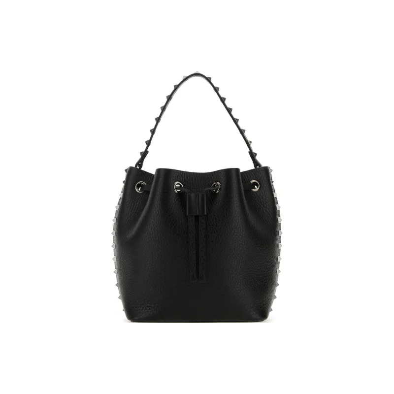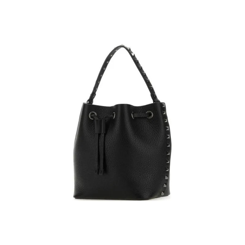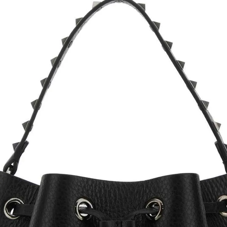 Valentino Rockstud Кожа Ведрообразная Сумка Сумка Сумка через плечо Сумка через плечо Женская Черная
