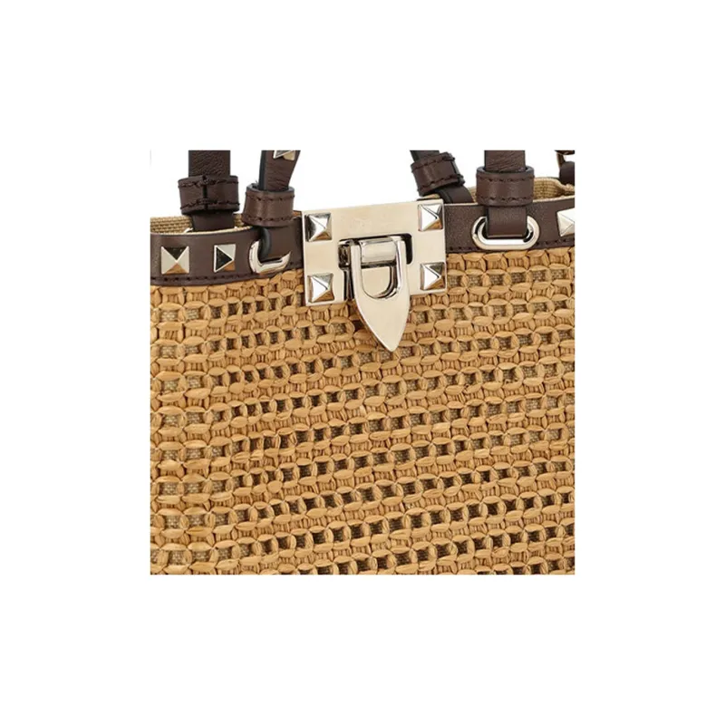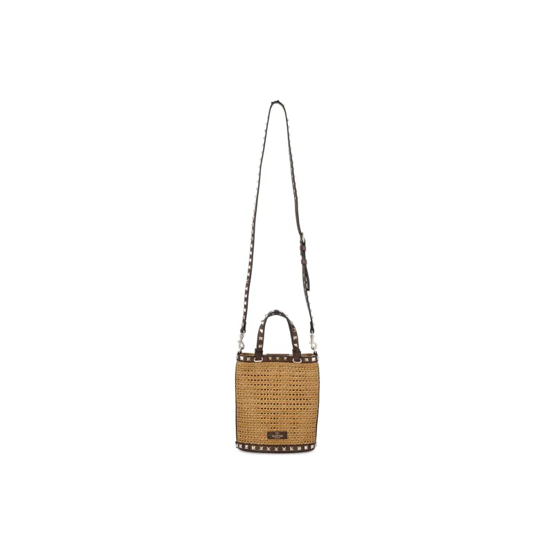 Valentino Rockstud Кожа Детали Портативный Crossbody Сумка Сумка через плечо Маленькая Женская Коричневая