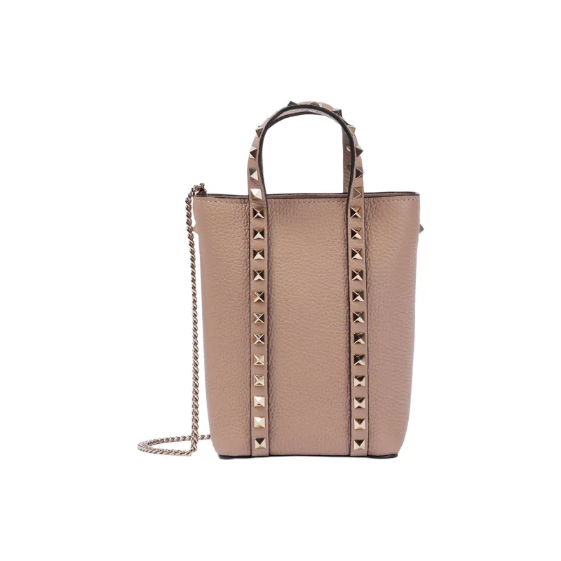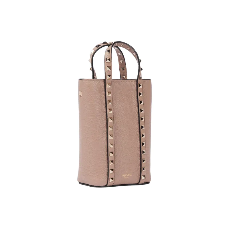 Valentino Rockstud Кожа Тоут Сумка Сумка для покупок Сумка Сумка через плечо Женская Розовая