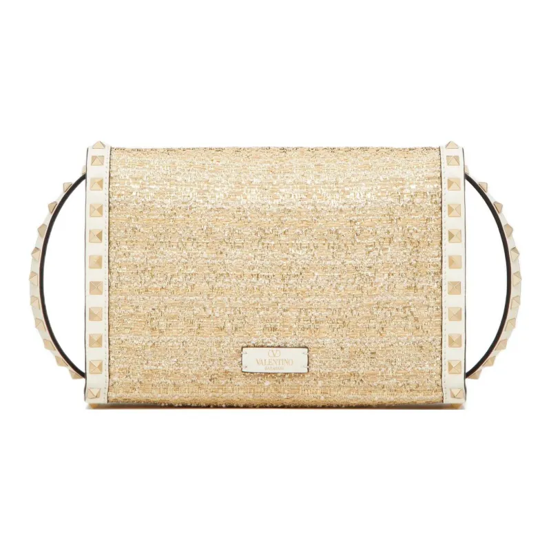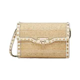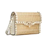 Valentino Rockstud Raffia Сумка через плечо Сумка на плечо Женская Белая и Естественная