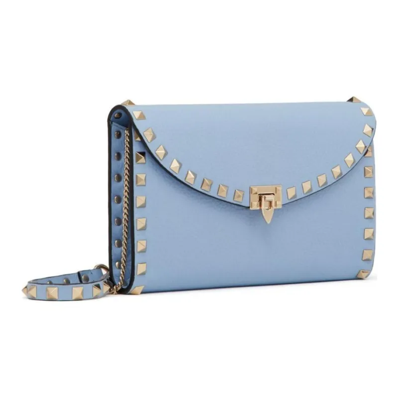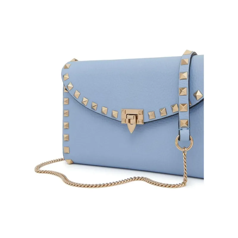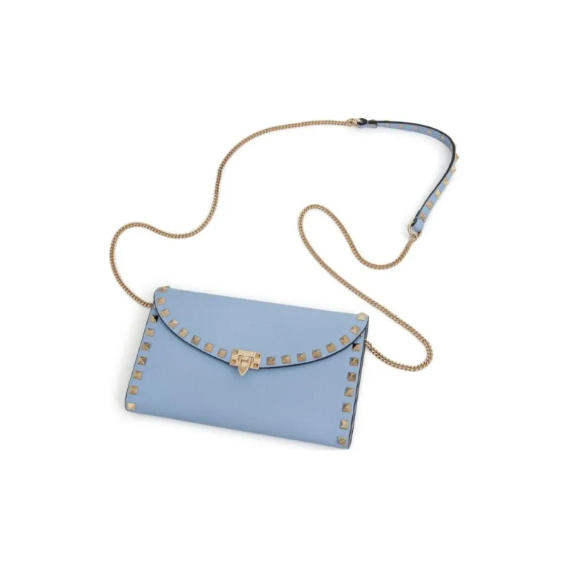 Valentino Rockstud Sheepskin Wallet Women's Blue