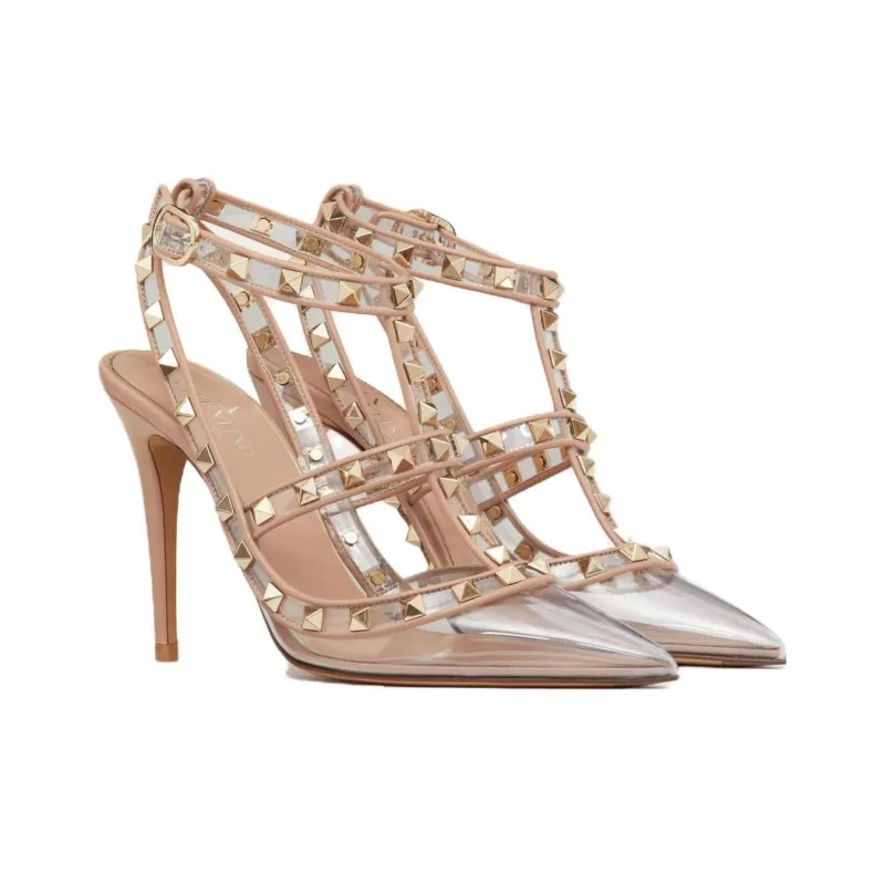 Valentino Rockstud Узкий каблук Высокие каблуки 10 см Женские Прозрачно-розовый