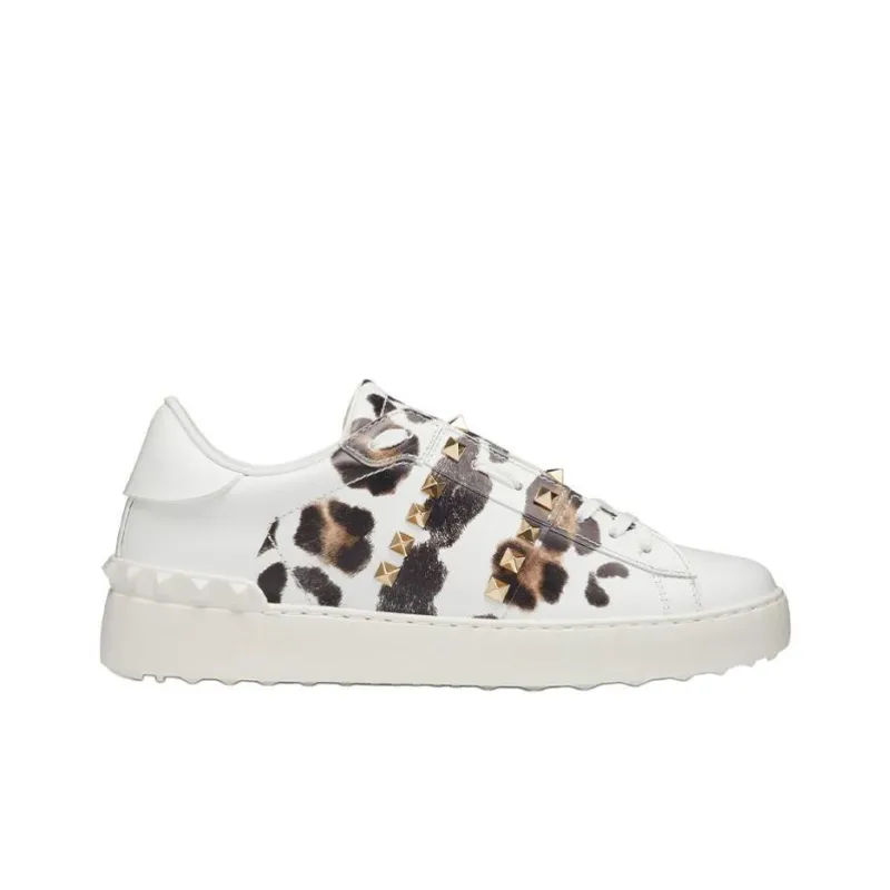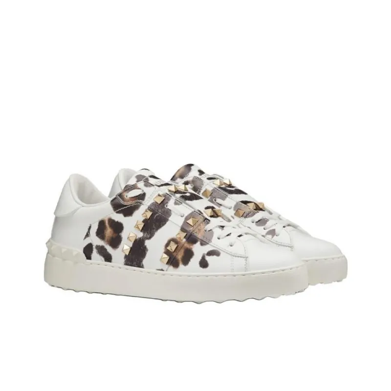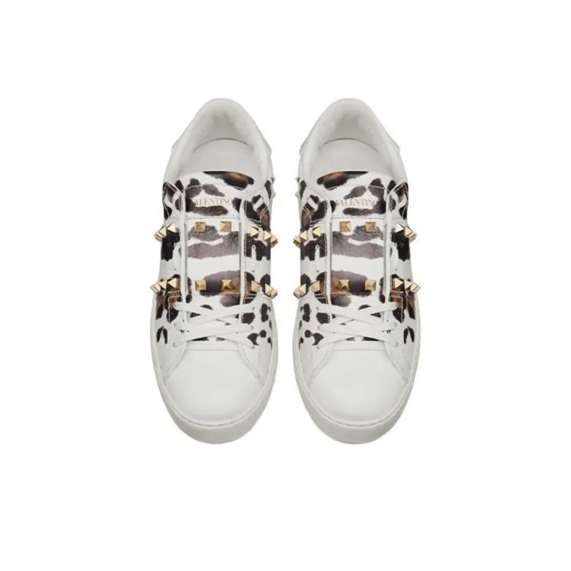 Valentino Rockstud СНИКЕР Низкий Топ Стильные Скейтбординги Женские Леопардовый принт