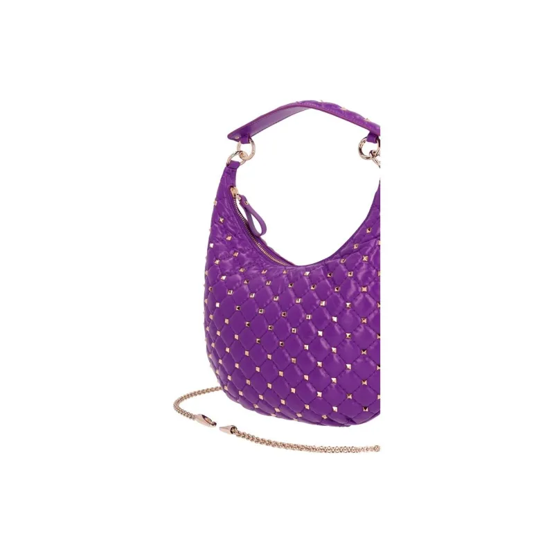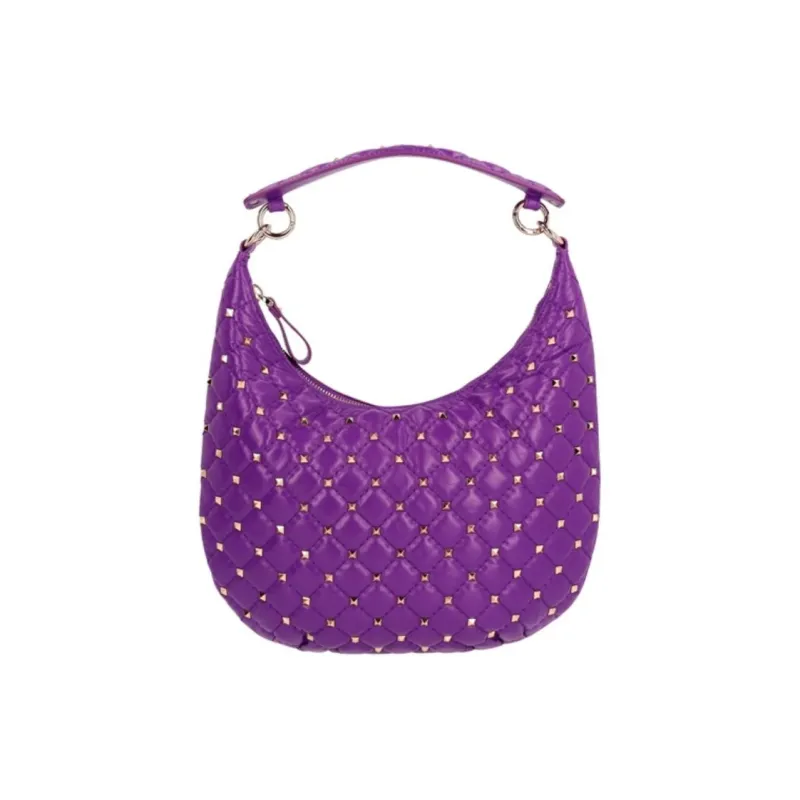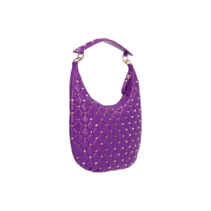 Valentino ROCKSTUD SPIKE Телячья кожа Хобо Сумка Сумка на одно плечо Маленькая Женская Фиолетовая