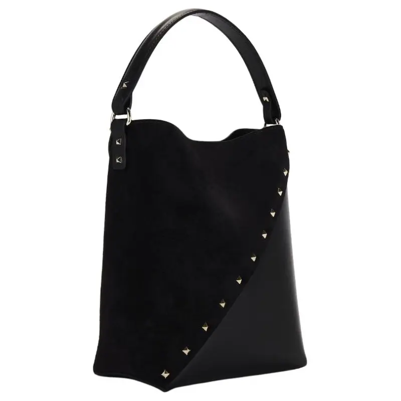 Valentino ROCKSTUD WISPY Кожаная сумка-ведро сумка через плечо сумка женская черная