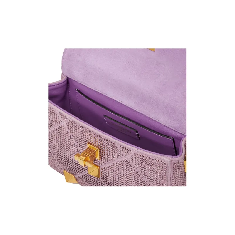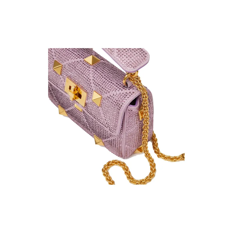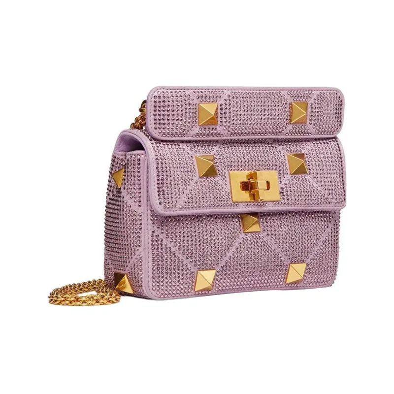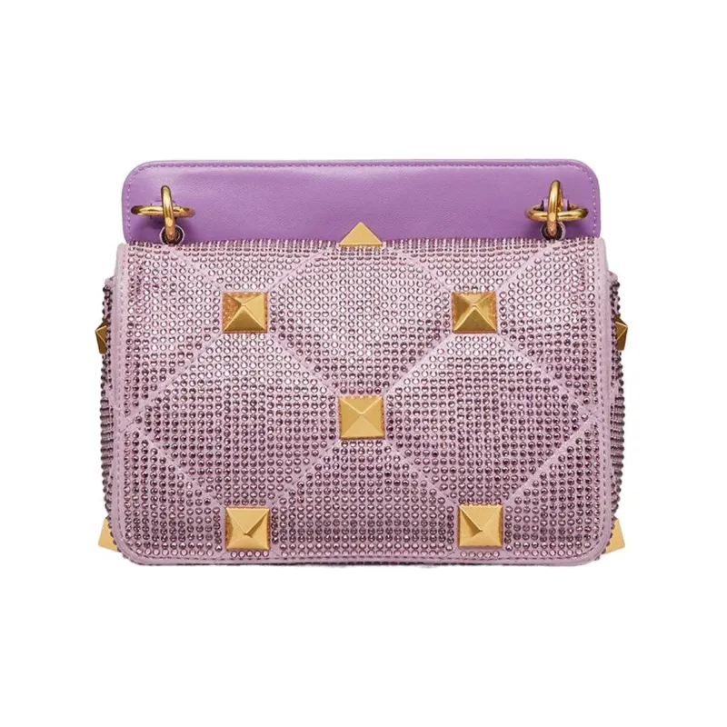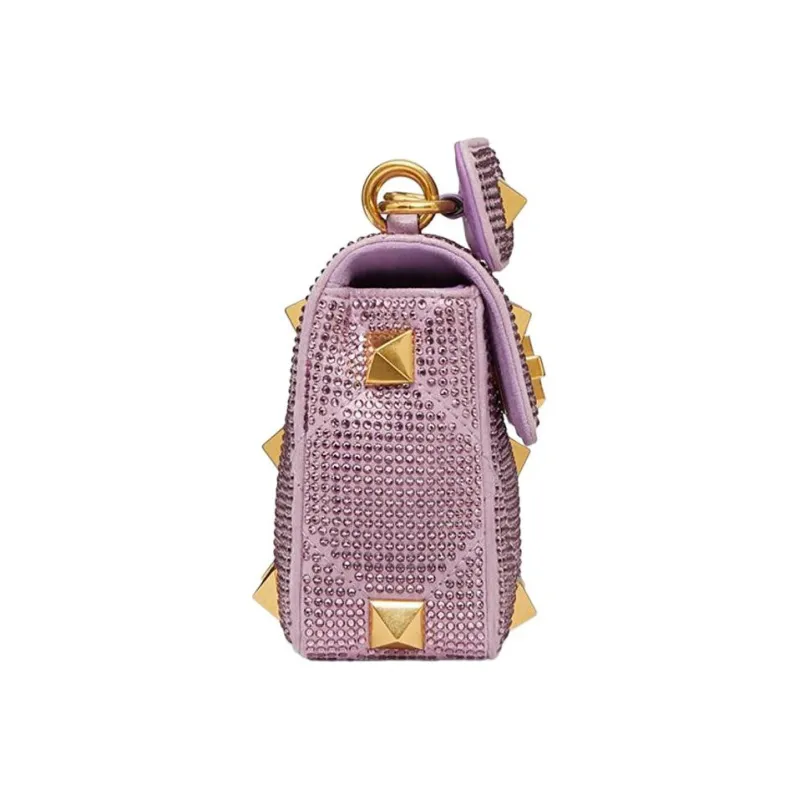 Valentino Roman Stud Стразы Портативная Сумка через плечо Сумка на плечо Женская Фиолетовая
