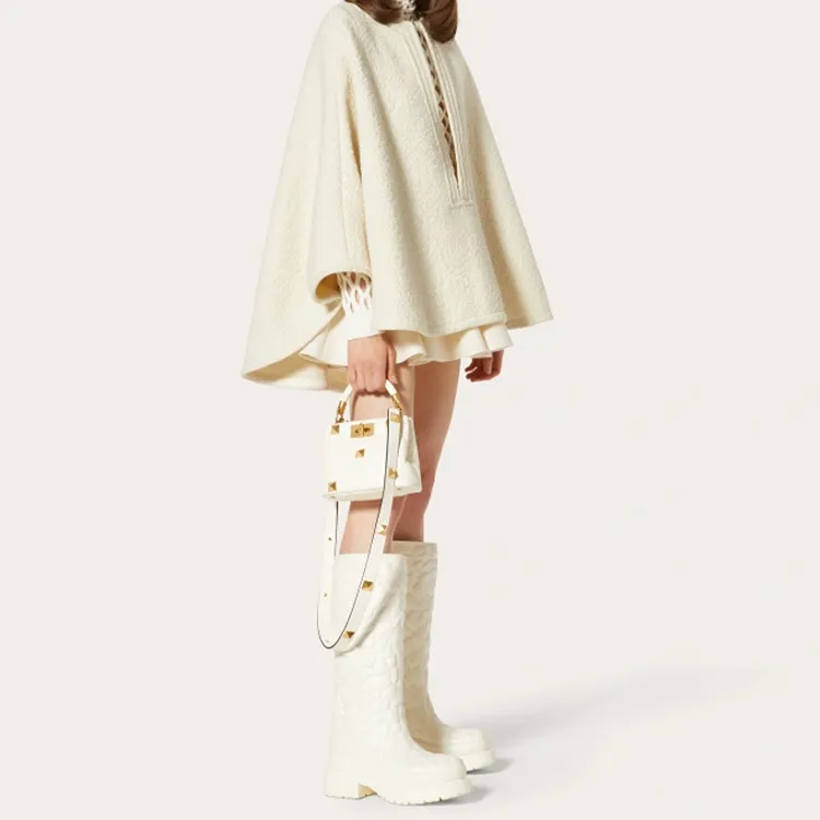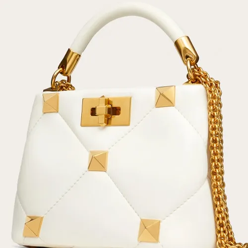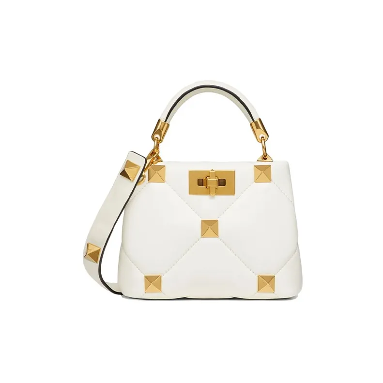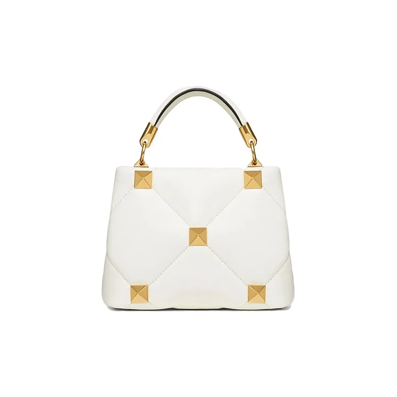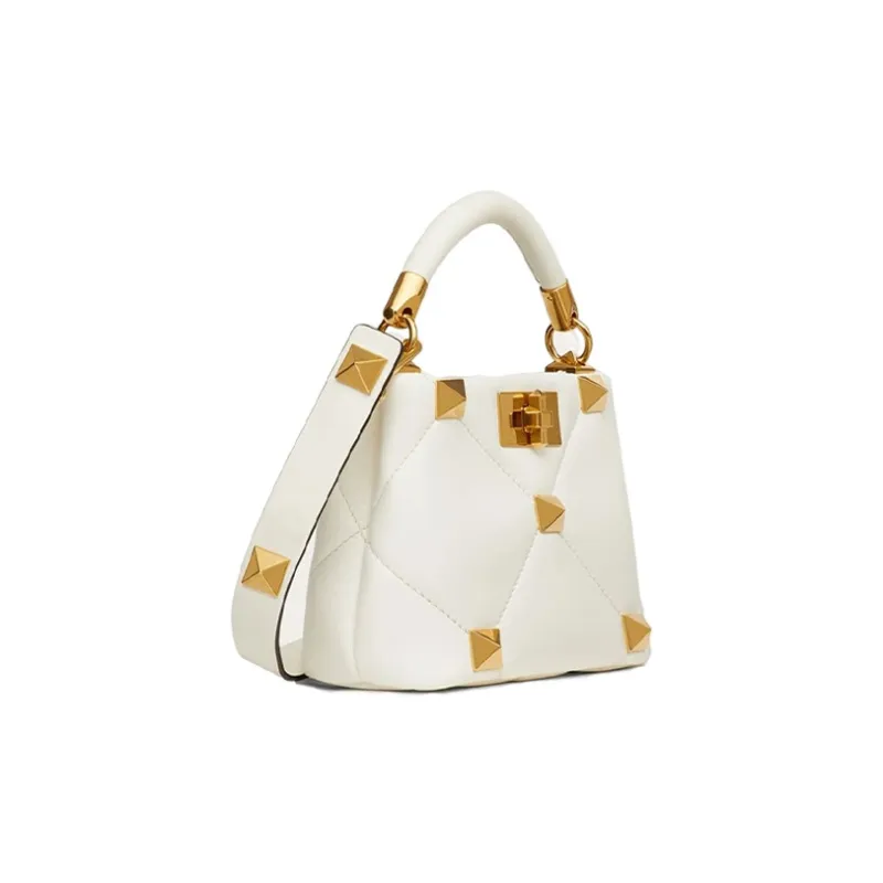 Valentino Roman Stud Овчина Сумка через плечо Сумка Мини Женская Цвет Слоновая кость