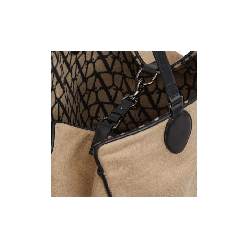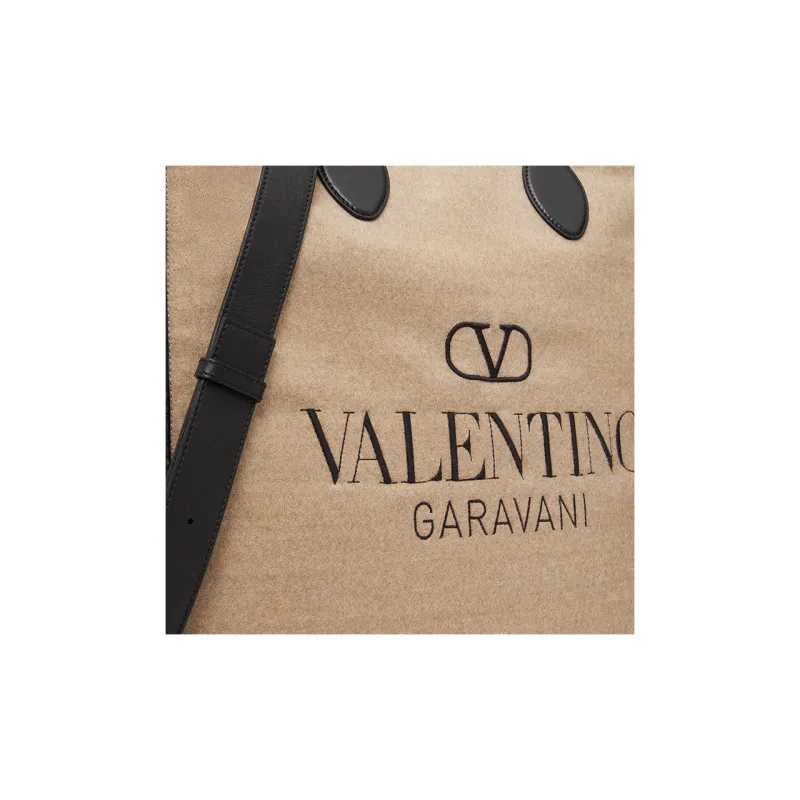 Valentino Овчина Тоут Сумка Сумка для покупок Сумка через плечо Сумка Мужская Черная и Бежевая