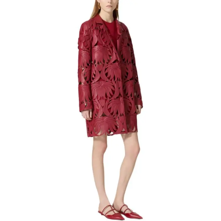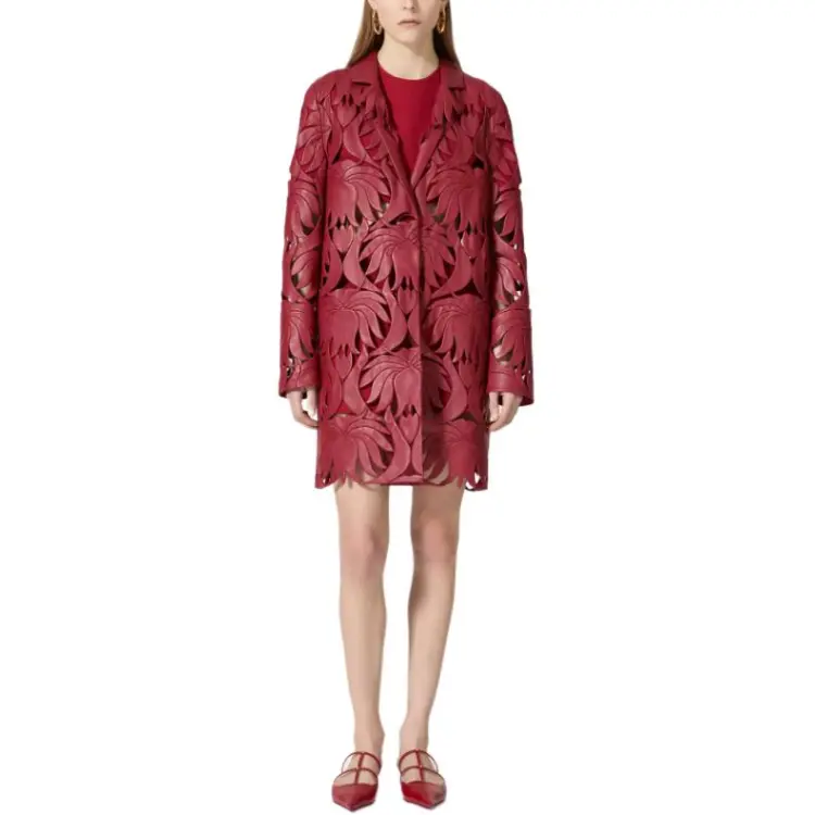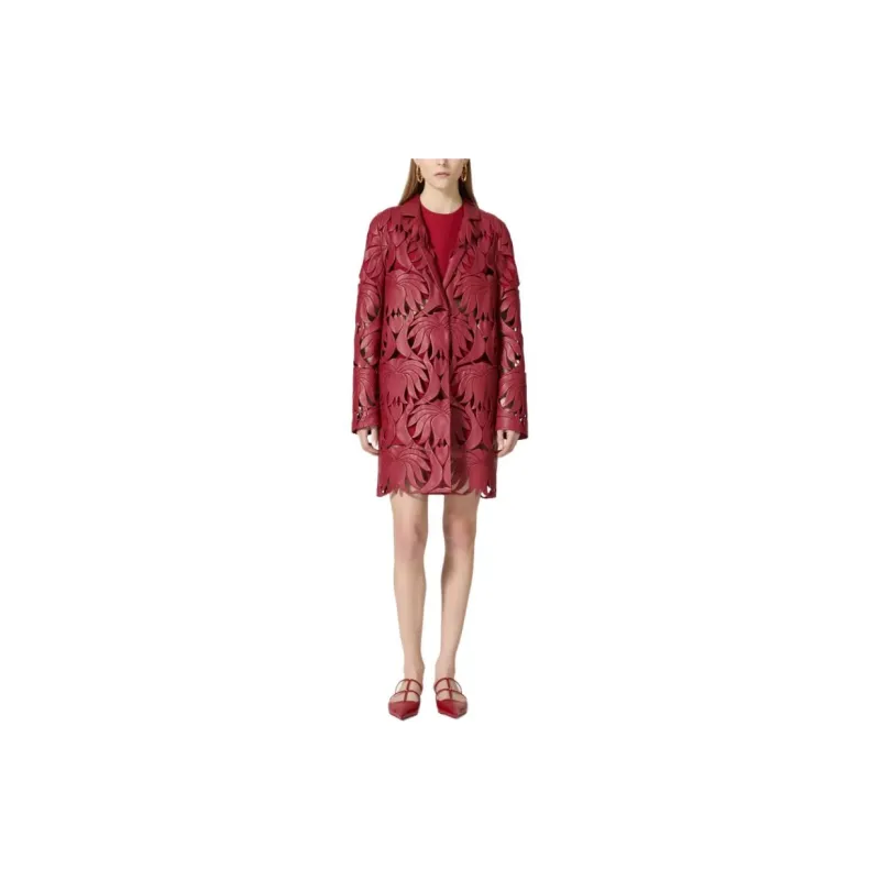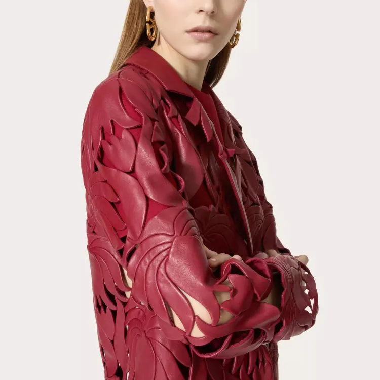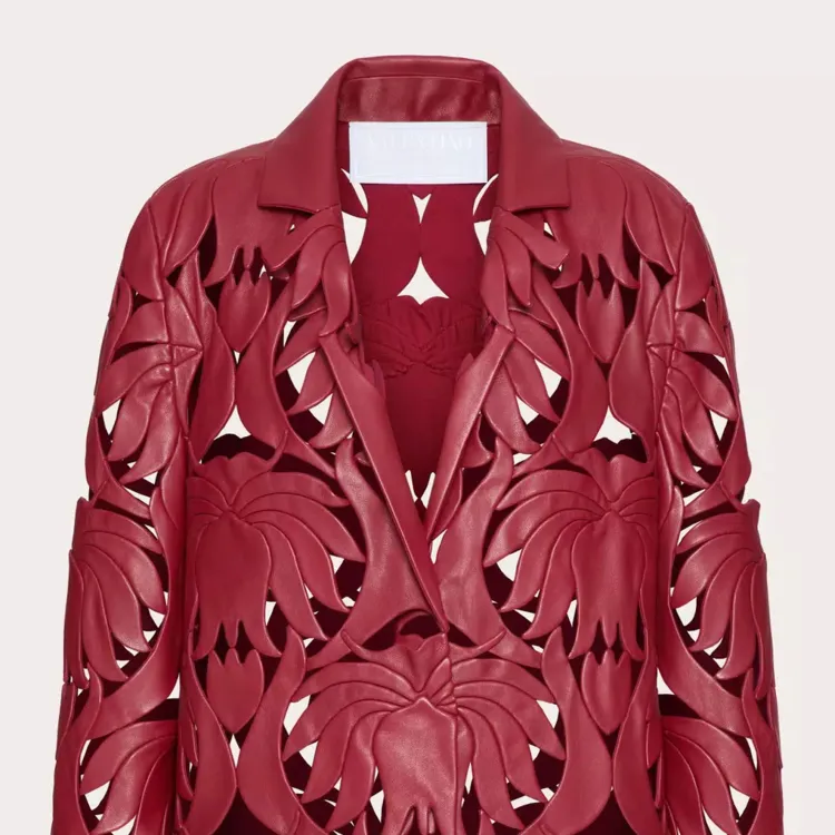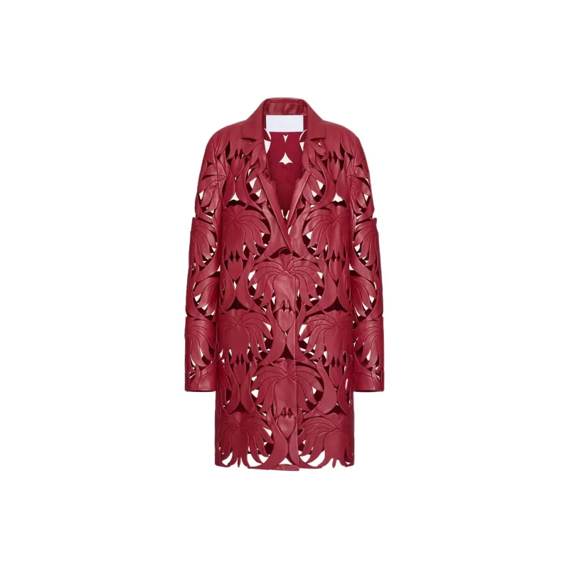 Valentino SS24 Кожа Куртка Женская Темно-Красная