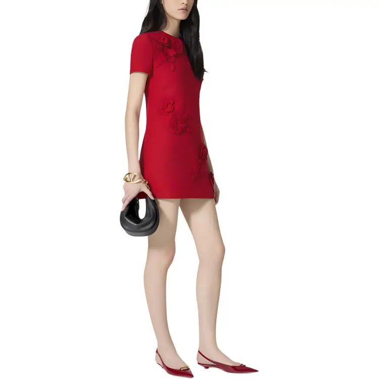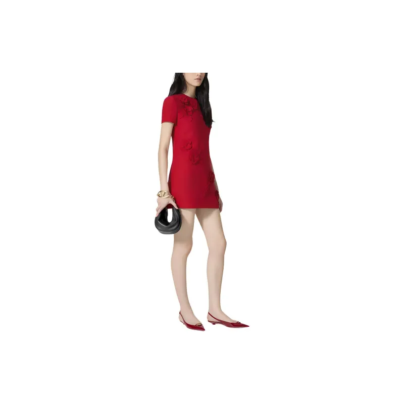 Valentino SS24 Короткое платье с короткими рукавами женское красное